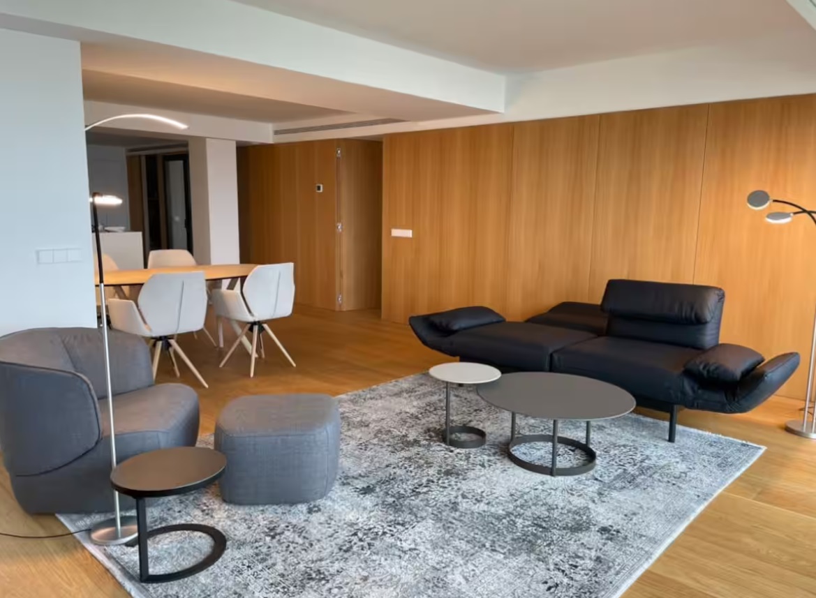 El mobiliario es de alta calidad, los muebles de Rolf Benz o un original de Leon Löwentraut son solo ejemplos. La cocina está totalmente equipada con platos Rosenthal y utensilios WMF. Aquí también encontrarás un mostrador. Se puede utilizar como espacio de trabajo y para comer.