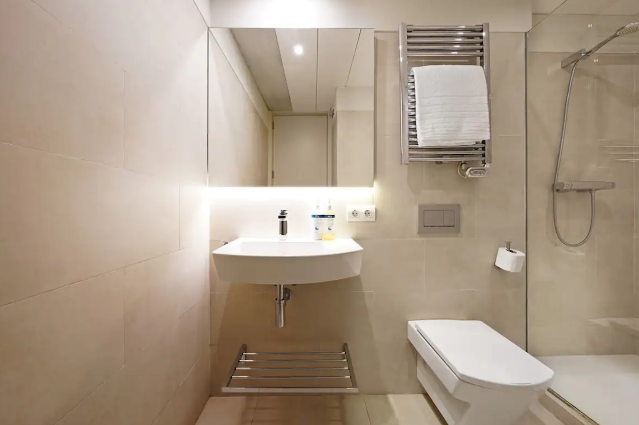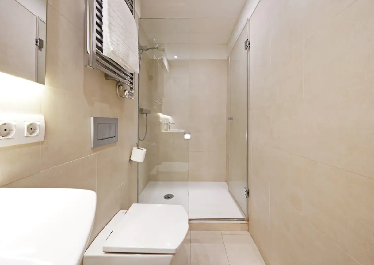 Equipado con cálidos suelos de parquet color miel, este fantástico apartamento está decorado con un estilo moderno y decorado en tonos neutros para crear un ambiente luminoso y fresco perfecto para una estancia única en el centro de Barcelona. El espacioso comedor-salón con una moderna cocina abierta totalmente equipada es la pieza central de esta magnífica propiedad, amueblada con una mesa de comedor de madera y una relajante sala de estar con un sillón y un sofá cama individual. Sus dos pequeñas ventanas del balcón se abren a las vistas, los sonidos y los olores del pintoresco mercado de la Boquería. La zona de descanso consta de dos dormitorios con dos camas individuales y un dormitorio doble con baño privado con ducha. Luminosas y espaciosas, todas están decoradas en tonos de gris compensados por cálidos muebles de madera. El segundo baño con ducha está fuera del pasillo. El apartamento tiene acceso a una increíble terraza comunitaria con excelentes vistas a La Rambla.