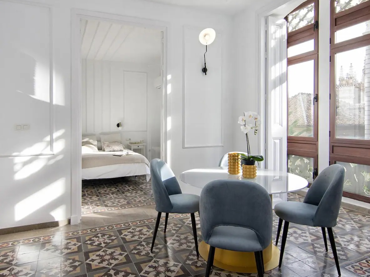 Situado en la segunda planta de uno de los edificios emblemáticos de Granada, el piso ha sido decorado cuidadosamente con un estilo que pone de relieve las características más clásicas de la propiedad sin renunciar a la modernidad y el confort. Balcones, suelos hidráulicos originales y un mobiliario cuidadosamente elegido, se combinan para crear un espacio que mezcla con un gusto exquisito lo clásico y lo contemporáneo.