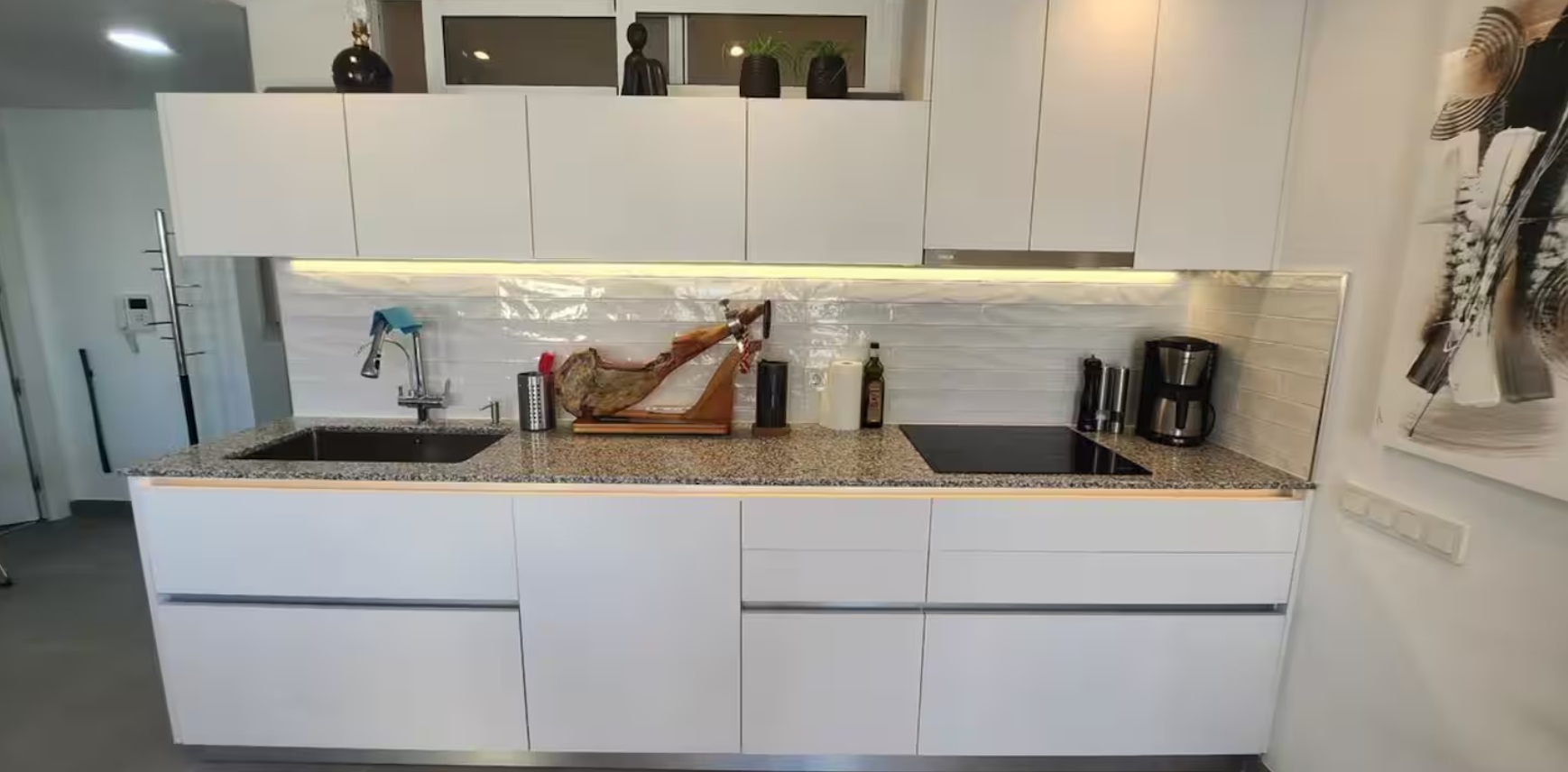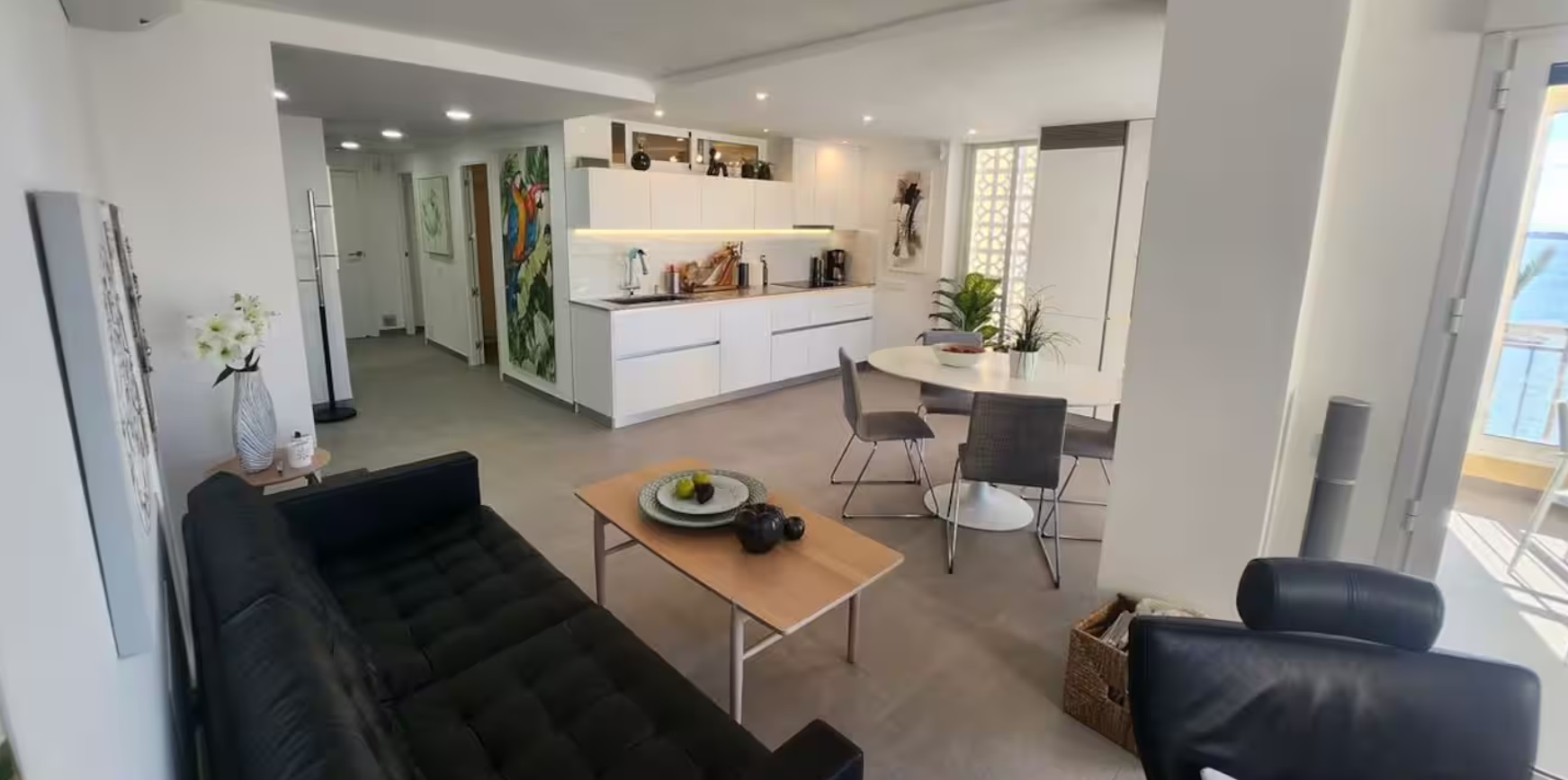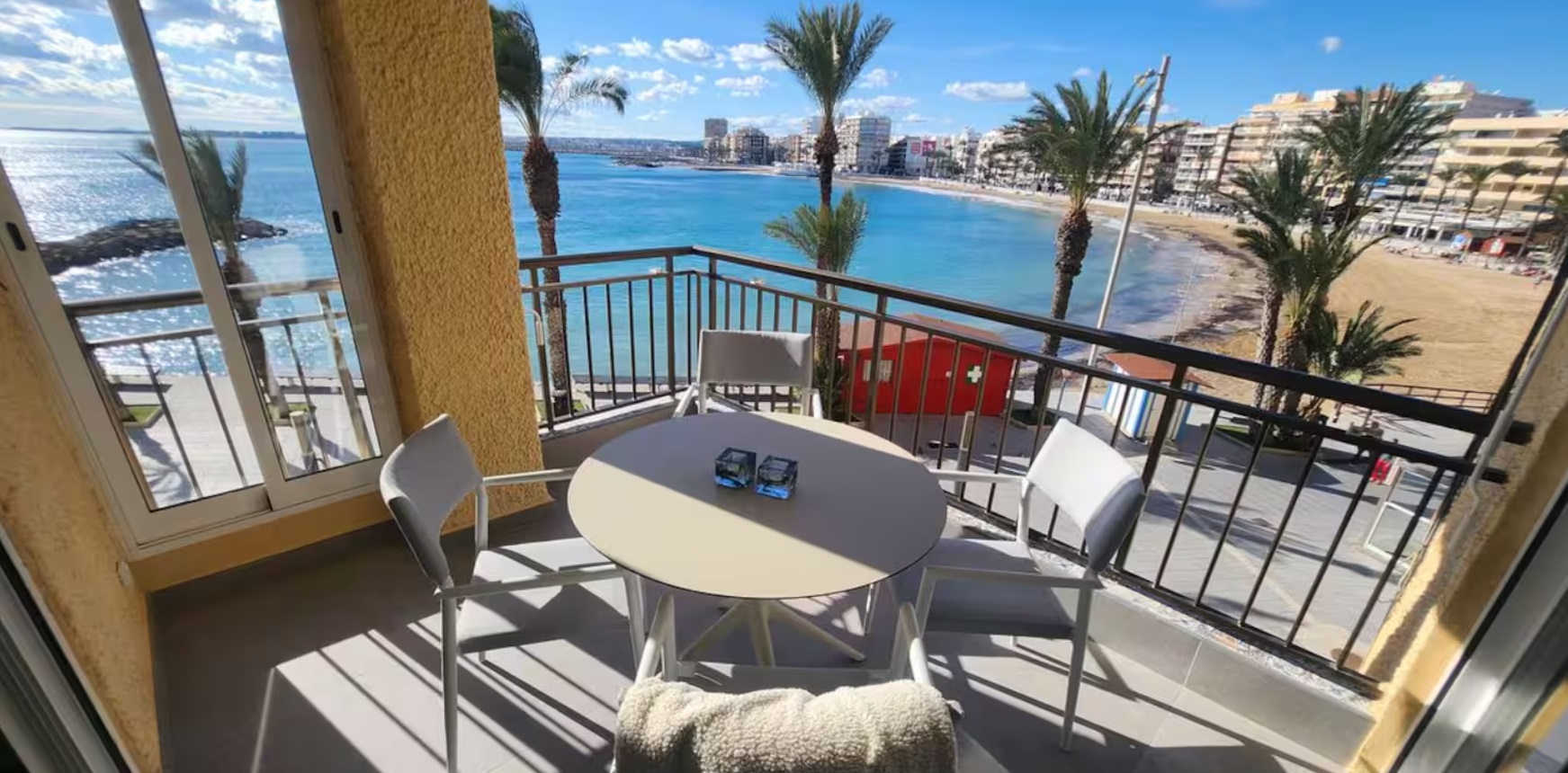 Directamente en el paseo marítimo de la playa Cura, en el centro de Torrevieja, Costa Blanca. Este apartamento de 4 dormitorios, soleado y atractivo, está completamente renovado, con un alto estándar sueco, además de estar totalmente equipado para una familia.