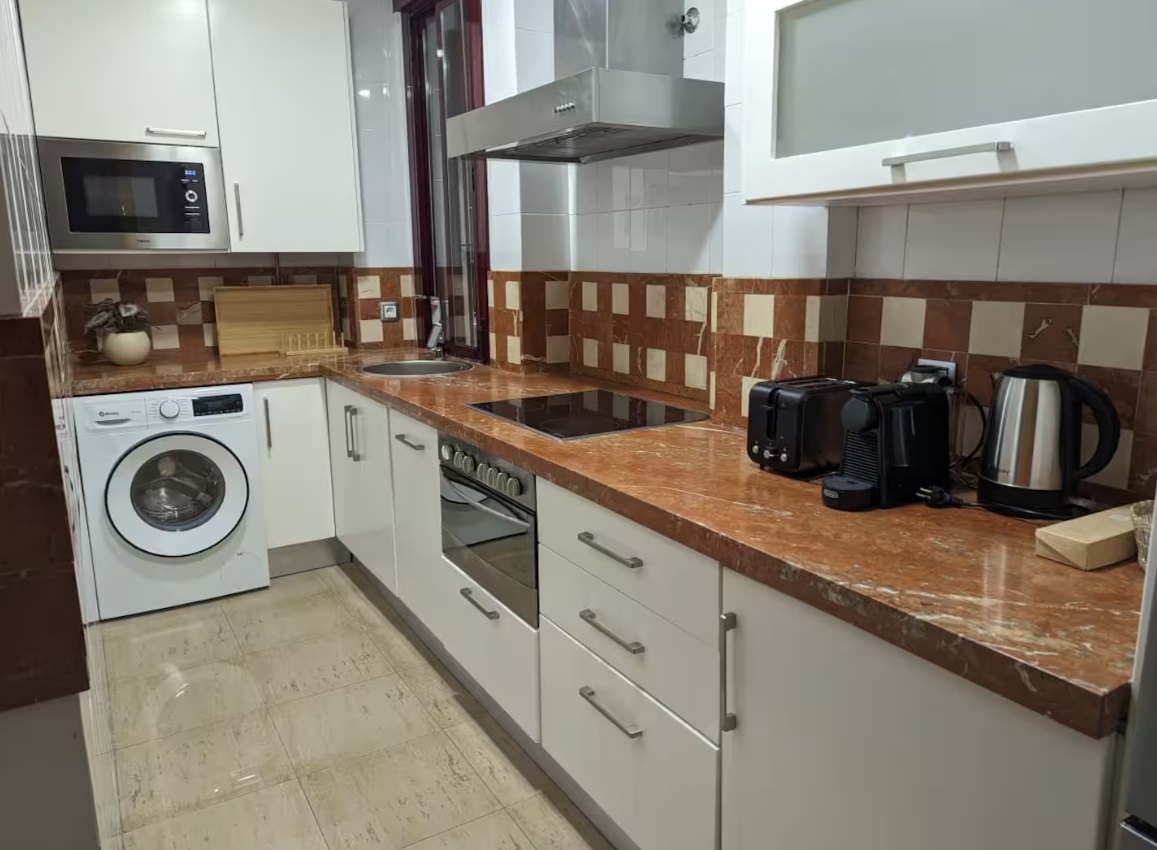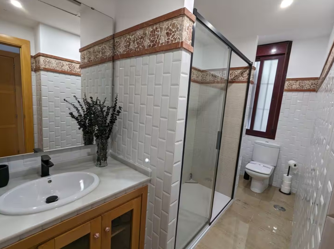 Está diseñado para que un grupo de hasta seis personas disfruten de una estancia cómoda e inolvidable en la capital sevillana. Camas de calidad, duchas amplias, todo está pensado para garantizar el descanso. Aparque en nuestrol parking incluido en el precio y olvídese del coche. Todo se puede visitar a pie. El espacio es grande, de unos 160m2, por lo que hay espacio de sobra para hasta 6 personas. Su gran comedor para 6-8 personas permite disfrutar de cenas con familia o amigos para después relajarse en su gran sofá.