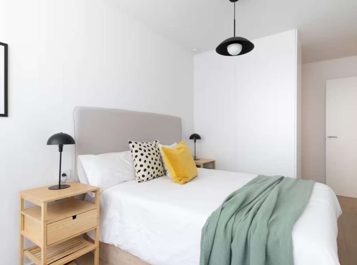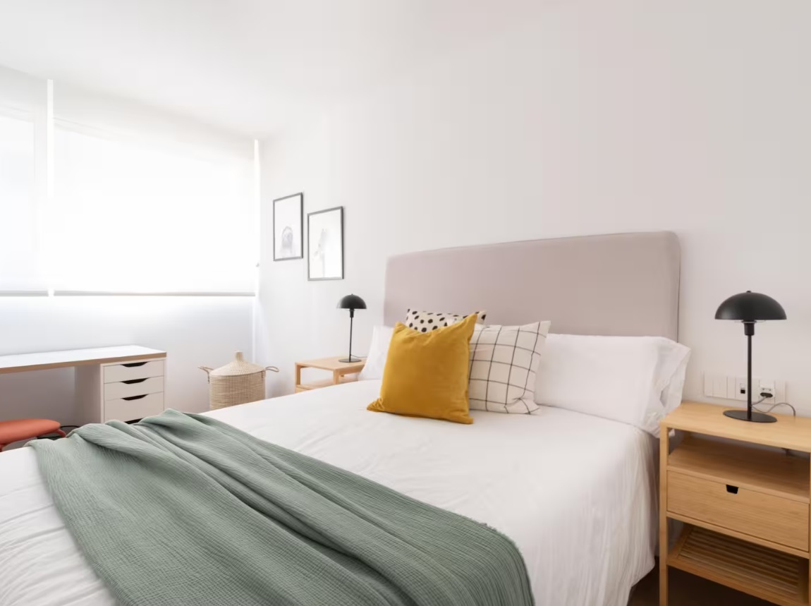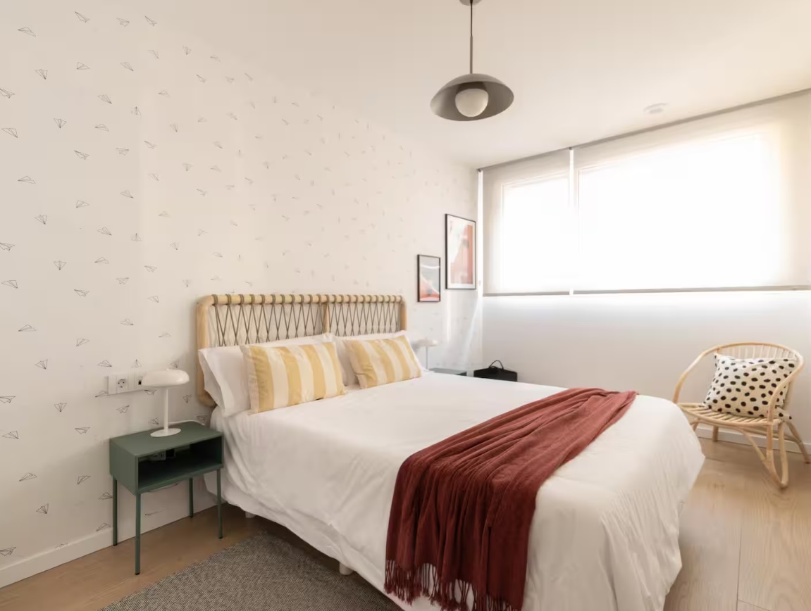 Ubicado en el corazón de la ciudad, a pocos pasos de la Plaza de Toros y con fácil acceso a todos los atractivos del centro. Disfruta de su terraza, jardín, parking con carga para vehículos eléctricos, gimnasio, piscina y vistas panorámicas del skyline de la ciudad y de toda la cuenca de Pamplona desde la azotea del edificio. La combinación perfecta entre tranquilidad residencial y vida urbana. En el dormitorio principal, con un colchón King Size (1,80 x 2 m), dispone de un vestidor con acceso directo a su baño privado en suite. También contará con dos dormitorios dobles adicionales, cada uno con colchón Queen Size (1,50 x 2 m) y amplios armarios. Uno de ellos también dispone de un escritorio. Ambos comparten el segundo baño.