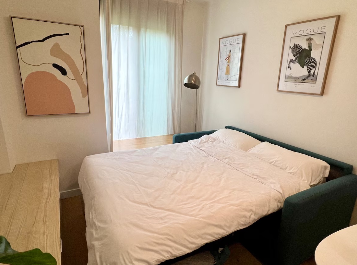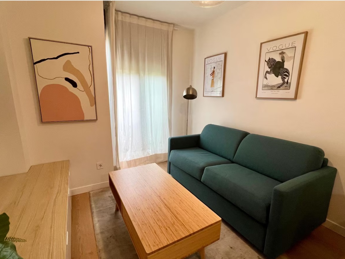 El apartamento cuenta con 1 dormitorio, 1 baño, una acogedora sala de estar con sofá cama y televisor, además de una cocina completamente equipada y un comedor, perfectos para una estancia relajante y cómoda. Situado a muy poca distancia del Aeropuerto de Madrid Barajas, muy cerca de IFEMA y el Campo de las Naciones, excelente comunicación con vías rápidas: M-40 y A-2.