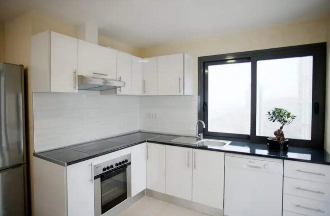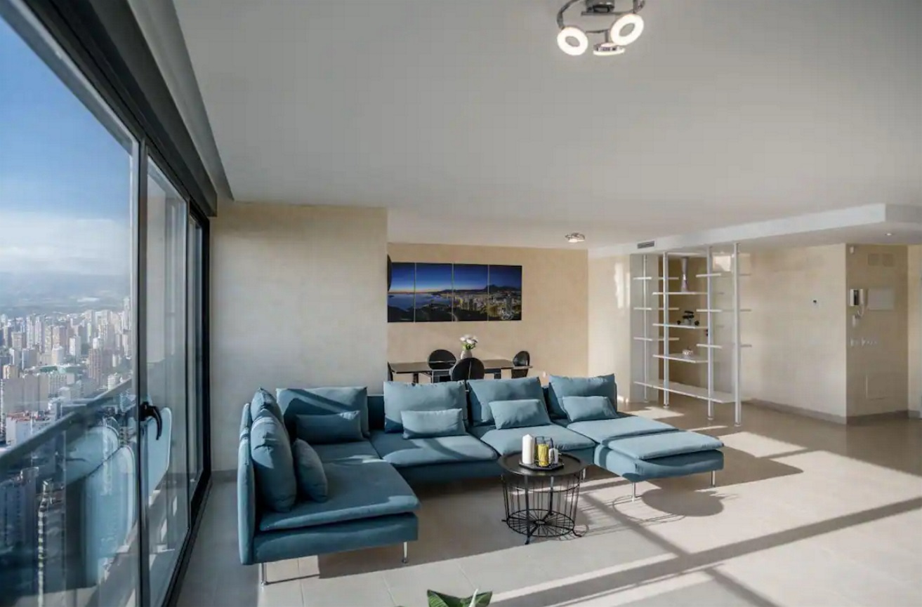 Este alojamiento único tiene 170 metros cuadrados de superficie. Vistas fantásticas de todo Benidorm e Isla de Benidorm. Disfruta de la paz del horizonte y del bullicio de la ciudad. Disfruta de acceso a una piscina, gimnasio, cancha de baloncesto y mucho más. Tres dormitorios, cada uno con un baño y vestidor separados, una gran sala de estar y una amplia terraza. Aparcamiento en el garaje de la casa. A cinco minutos a pie de la playa de Levante.