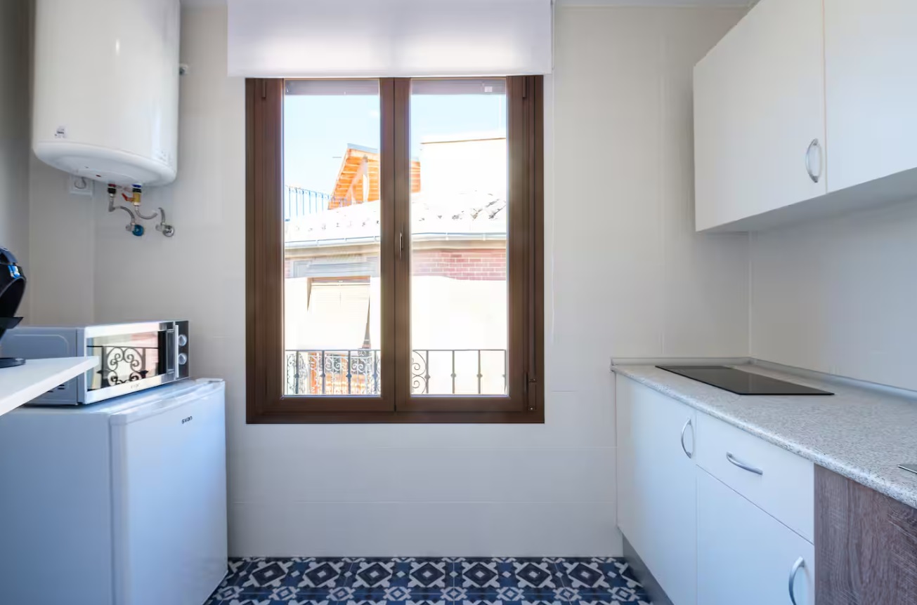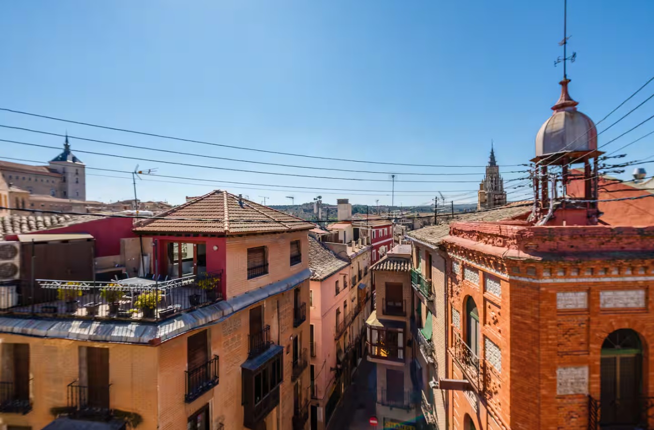 Calefacción y aire acondicionado. Situado en junto a la Plaza de Zocodover en pleno Casco Histórico de Toledo con capacidad para 6 personas, ubicado junto a museos, atracciones turísticas, tiendas, restaurantes, bares, discotecas, etc… A escasos metros de la Catedral Primada de Toledo. El apartamento está ubicado en un edificio histórico con más de 100 años de historia recientemente reformado donde se respetó parte de la estructura original y elementos arquitectónicos del edificio original.