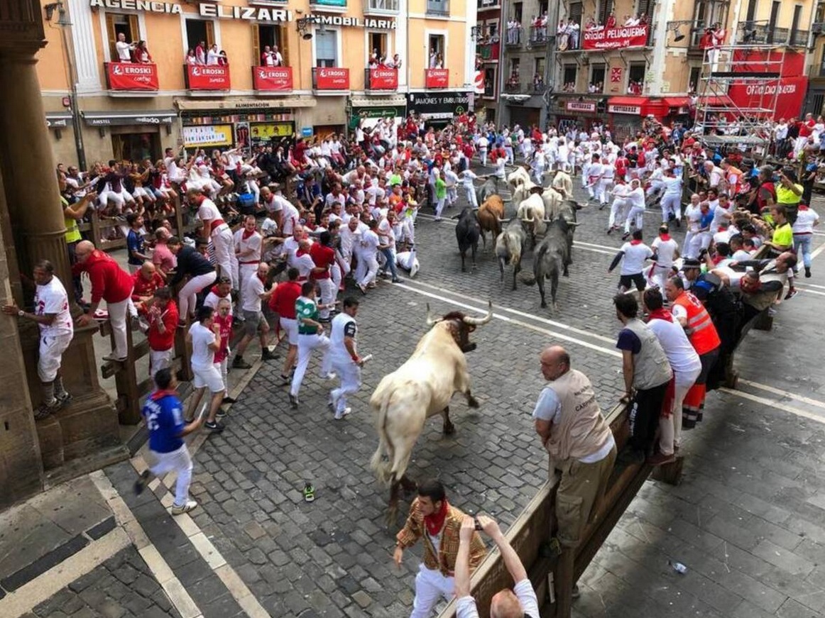 Está situado en el centro del Casco Antiguo de Pamplona. Con inmejorables vistas al encierro de los sanfermines desde sus dos balcones del salón, en primera línea del encierro! Se ve toda la calle de Mercaderes y también tiene espectaculares vistas a la famosa curva de Estafeta. Con todas las comodidades a mano: El mercado central a 1 minuto caminando, para los amantes de la gastronomía y la alimentación saludable. La Plaza del Ayuntamiento donde se lanza el cohete del inicio de las fiestas de Sanfermín, la Catedral de Pamplona, la fuente de Navarrería, la zona del Caballo Blanco o la Plaza del Castillo son algunos de los lugares para disfrutar caminando a muy pocos metros del apartamento. Además, la zona cuenta con numerosos restaurantes y bares de pinchos para poder degustar de la gastronomía local. Las habitaciones son muy amplias e interiores, por lo que están aisladas del ruido de la calle.