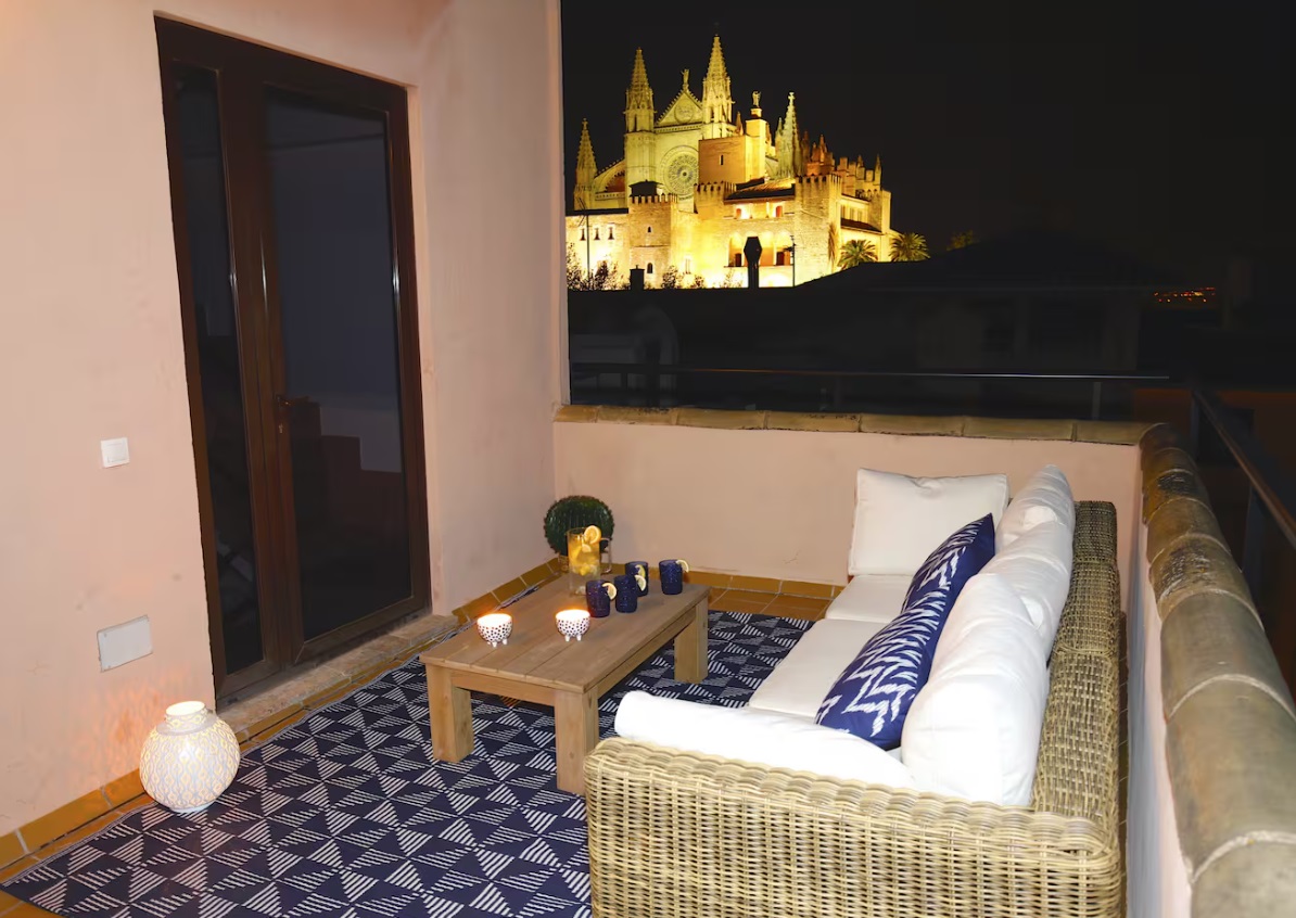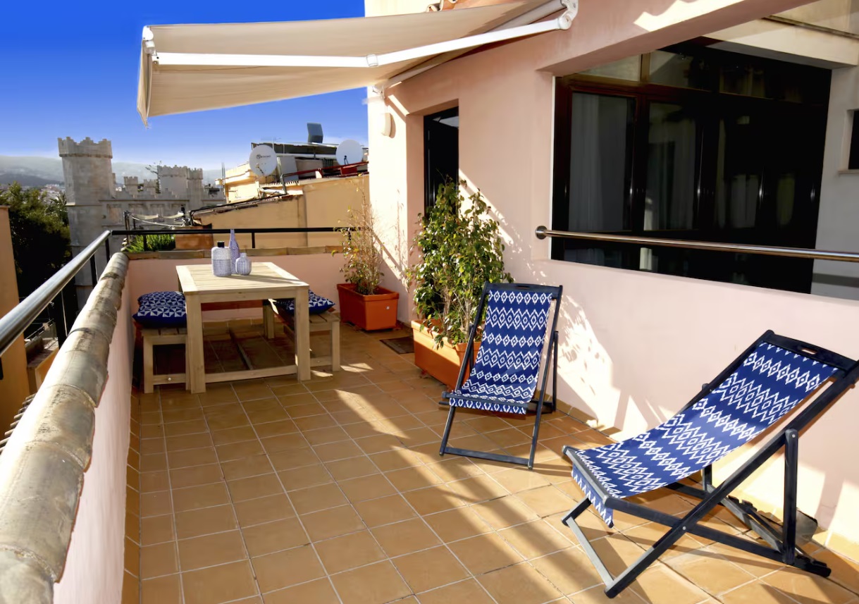 Fantástica terraza, La vivienda cuenta con calefacción central y aire acondicionado en todas las habitaciones, disponde de internet, wifi y TV Satélite. Apartamento de primera calidad con todas lo necesario para que disfrute de su estancia y una fantástica terraza, La vivienda cuenta con calefacción central y aire acondicionado en todas las habitaciones, disponde de internet, wifi y TV Satélite. La cocina esta completamente amueblada y equipada. La vivienda dispone de dos dormitorios independientes, uno con cama doble (150×190) y otro con dos camas individuales (90×190). Dispone de un baño completo. El apartamento está situado en la zona de la Lonja, a corta distancia a pie de innumerables puntos de interés de la ciudad de Palma como la Catedral o el Puerto. Una de las zonas más carismáticas y más cotizadas de la isla tanto por su situación, como por su carácter histórico.