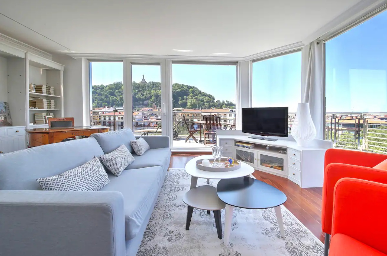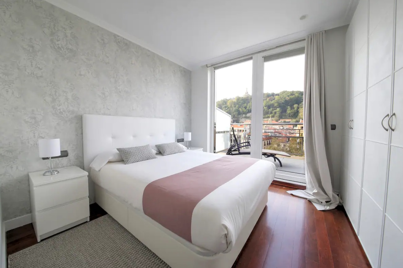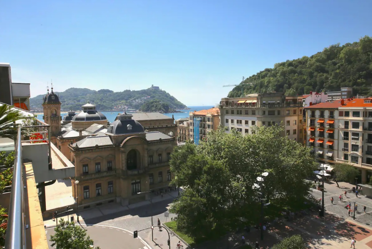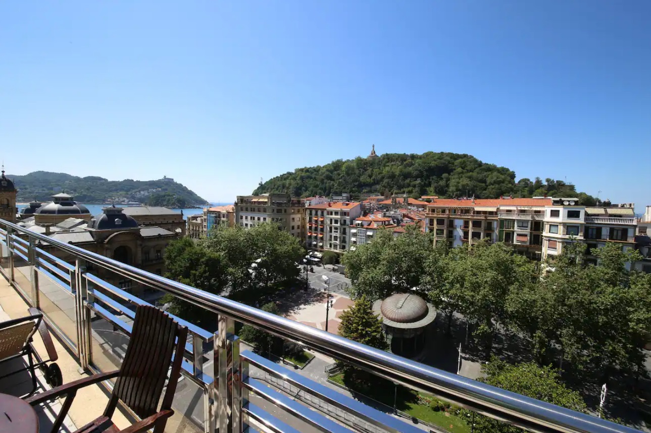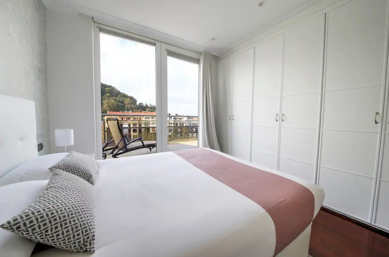 El apartamento hará de tu estancia algo inolvidable. Situado en un lugar inmejorable, frente a la parte vieja y la playa de La Concha, en pleno boulevard Donostiarra. No necesitarás ni un solo medio de transporte, todo está a mano. En la construcción del edificio se han utilizado materiales y equipamientos de 1era línea y está dotado de todo tipo de comodidades. Con una superficie de 80 m2, el apartamento está decorado con un estilo sobrio y minimalista en el que predominan los tonos claros. Está equipado con un cómodo mobiliario de diseño de primeras marcas. El salón es un luminoso y amplio, presidido por una impresionante terraza que rodea todo el apartamento y de donde se puede ver el mar, monte Urgull, parte vieja y Kursaal. La cocina está equipada con electrodomésticos de primeras marcas y perfectamente equipada con lavadora, lavavajillas, horno, microondas, hervidor de agua, cafetera, placa vitrocerámica, tostadora, platos, cubiertos, tazas, vasos, etc. La sala dispone de una TV de 42”. Hay dos habitaciones y dos cuartos de baño incorporados. Las habitaciones dan a la gran terraza. La habitación principal dispone de cama de matrimonio de 150 cms, la segunda habitación está equipada con dos camas individuales de 90 cms.