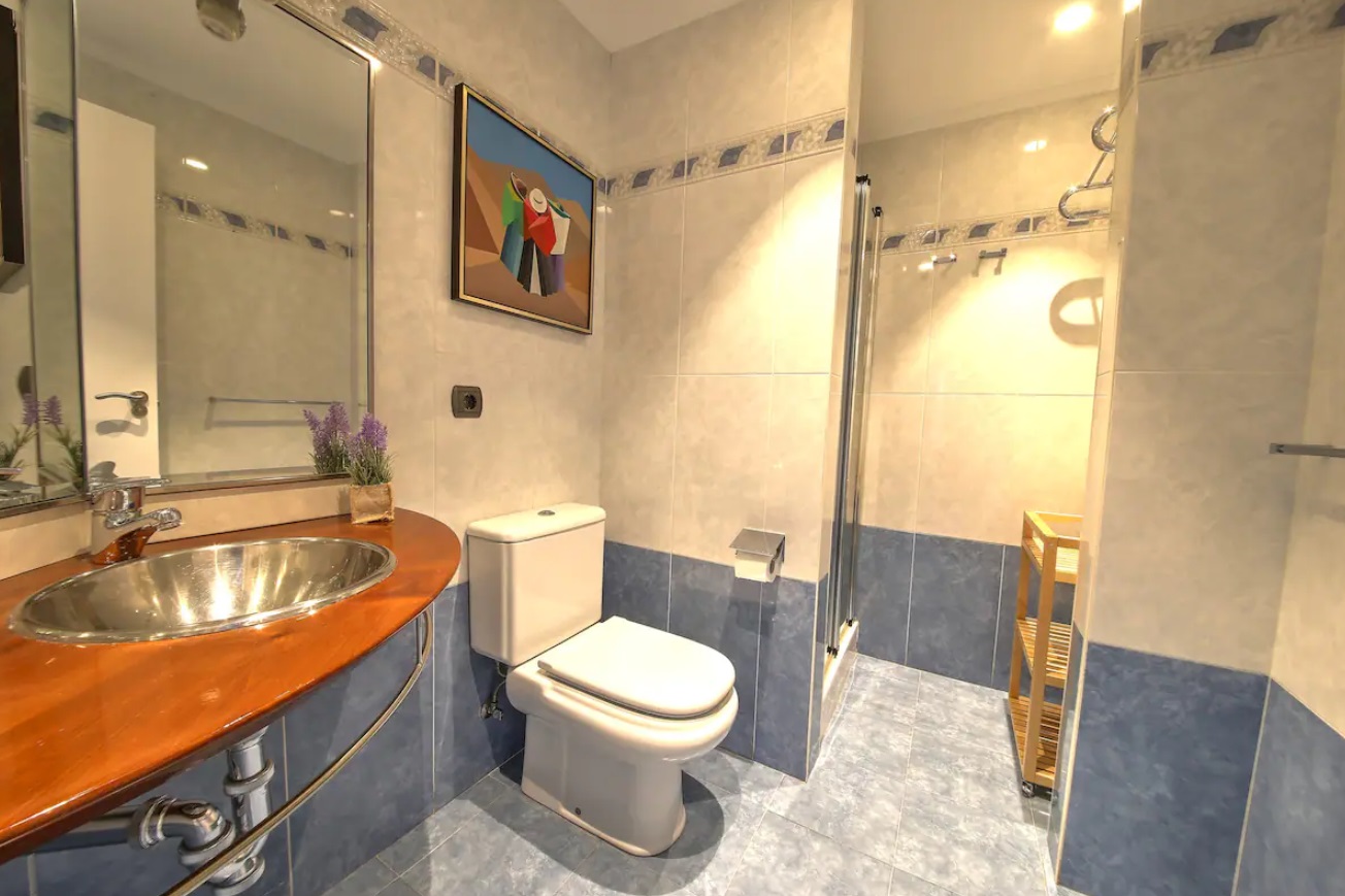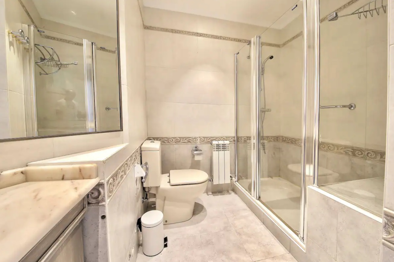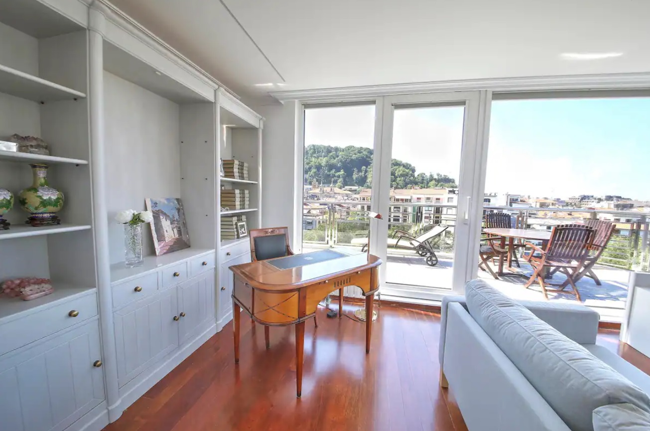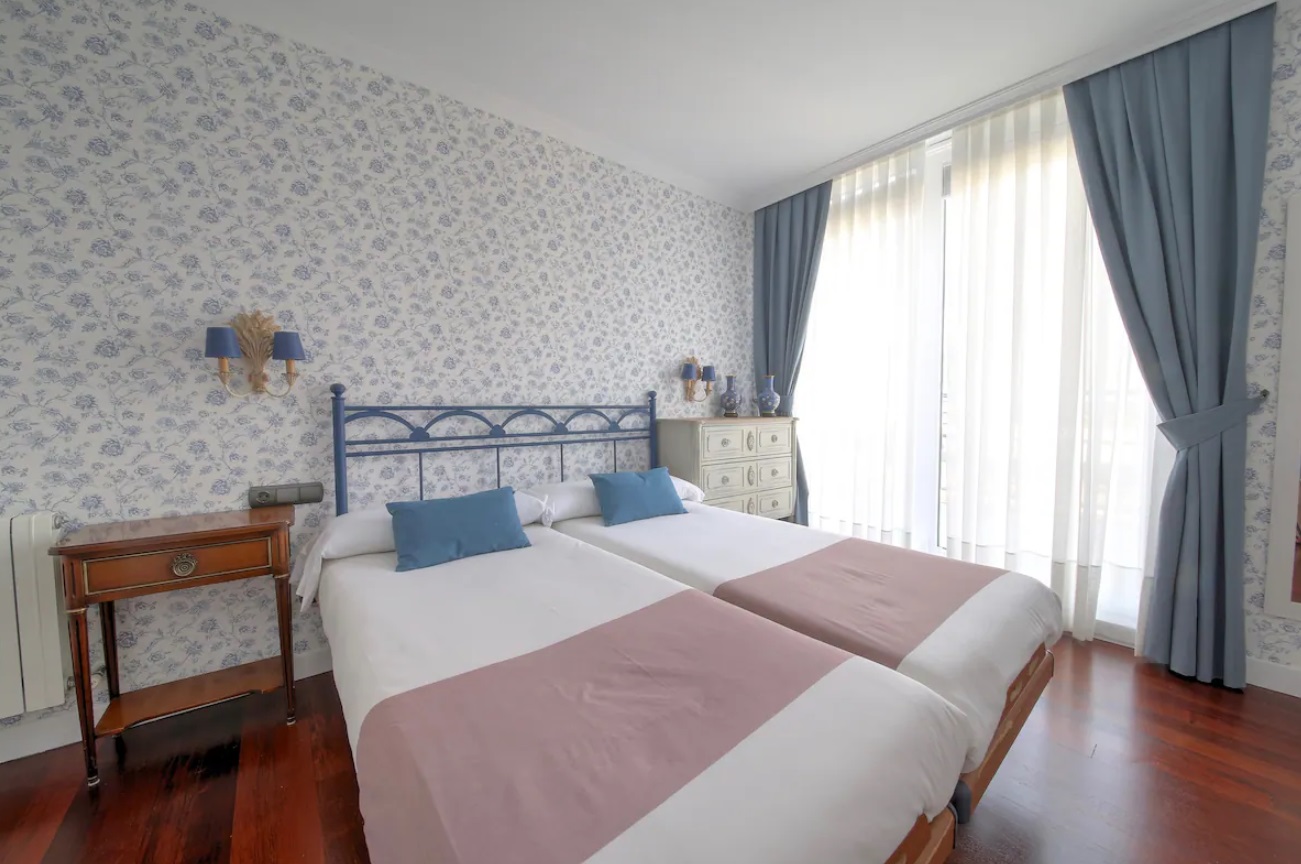 El apartamento hará de tu estancia algo inolvidable. Situado en un lugar inmejorable, frente a la parte vieja y la playa de La Concha, en pleno boulevard Donostiarra. No necesitarás ni un solo medio de transporte, todo está a mano. En la construcción del edificio se han utilizado materiales y equipamientos de 1era línea y está dotado de todo tipo de comodidades. Con una superficie de 80 m2, el apartamento está decorado con un estilo sobrio y minimalista en el que predominan los tonos claros. Está equipado con un cómodo mobiliario de diseño de primeras marcas. El salón es un luminoso y amplio, presidido por una impresionante terraza que rodea todo el apartamento y de donde se puede ver el mar, monte Urgull, parte vieja y Kursaal. La cocina está equipada con electrodomésticos de primeras marcas y perfectamente equipada con lavadora, lavavajillas, horno, microondas, hervidor de agua, cafetera, placa vitrocerámica, tostadora, platos, cubiertos, tazas, vasos, etc. La sala dispone de una TV de 42”. Hay dos habitaciones y dos cuartos de baño incorporados. Las habitaciones dan a la gran terraza. La habitación principal dispone de cama de matrimonio de 150 cms, la segunda habitación está equipada con dos camas individuales de 90 cms.