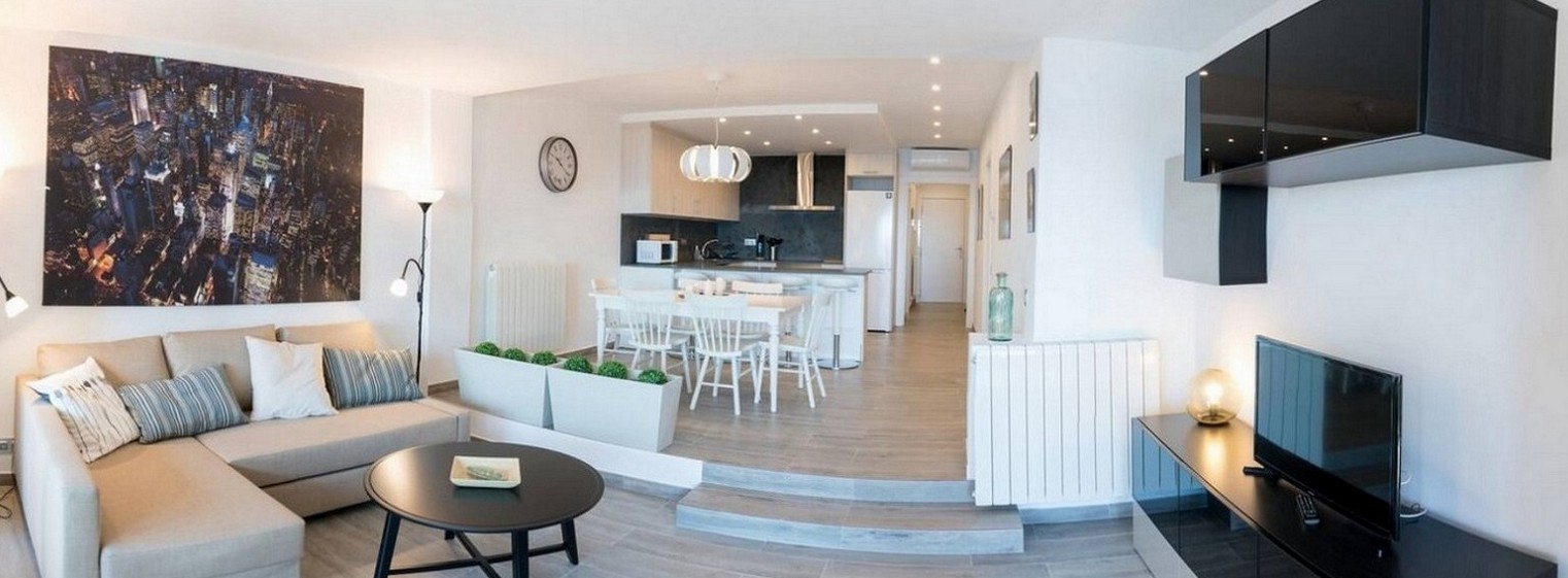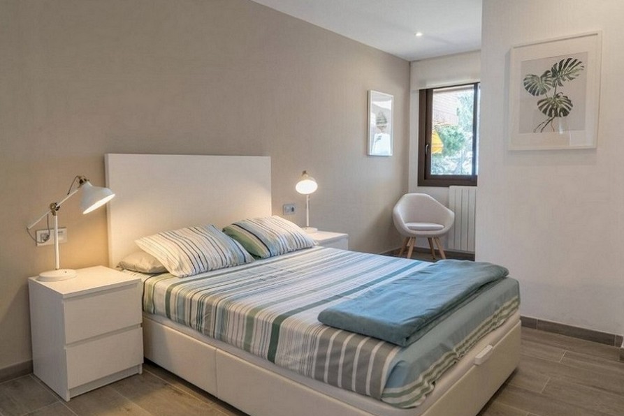 En primera linea de mar. El apartamento tiene 1 dormitorio en suite, 2 dormitorios, 2 baños, cocina abierta y un amplio salón con comedor con acceso a la terraza con vistas al mar. En la cocina hay todo lo necesario para preparar comidas y cenas en casa y en la entrada hay una lavadora. En la urbanización hay dos piscinas en una jardín muy bien cuidado y tranquilo.