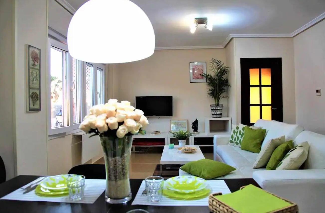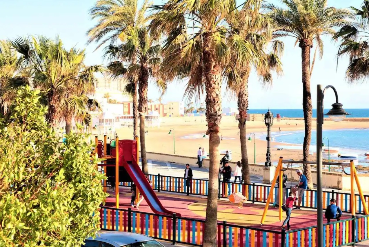 El piso está situado en un enclave de especial belleza. Desde el piso se puede admirar la playa de la Caleta , la única que está en el centro histórico y el antiguo balneario de La Palma de estilo modernista, el castillo de San Sebastián situado en un islote, el Castillo de Santa Catalina, hoy convertido en museo. EL PARQUE GENOVÉS. .Data de sigloXVIII. ES una visita imprescindible para admirar sus exóticos arboles, tomar un café.