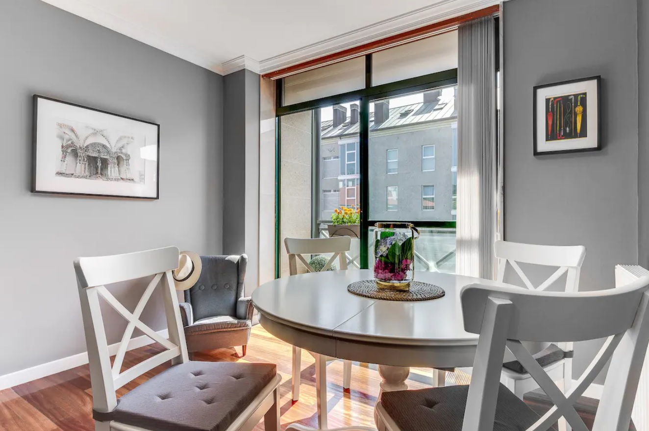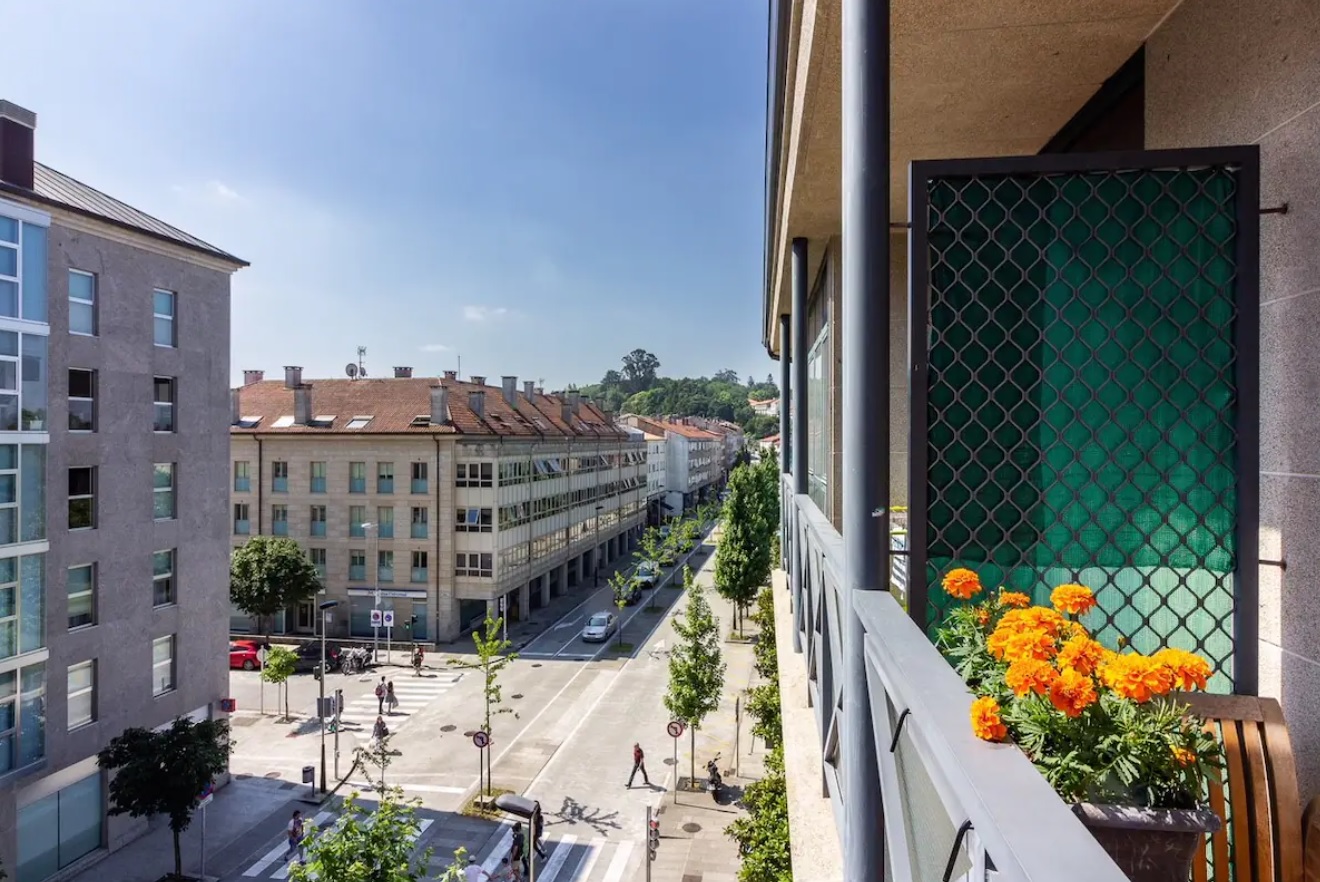 Apartamento recién reformado, muy luminoso, con una decoración que te hará sentirte en un espacio cómodo y acogedor. Esta situado a 100 metros del centro de acogida al peregrino y a 200 metros de la Catedral.Disponer de plaza de garaje con ascensor que da acceso directo al apartamento, lo hace especialmente cómodo. Enclavado en el precioso parque de Galeras, cuya calle cuenta con todos los servicios necesarios . El apartamento tiene perfecta accesibilidad,hemos sido especialmente cuidadosos en la elección de nuestros colchones, siendo estos especialmente confortables.
