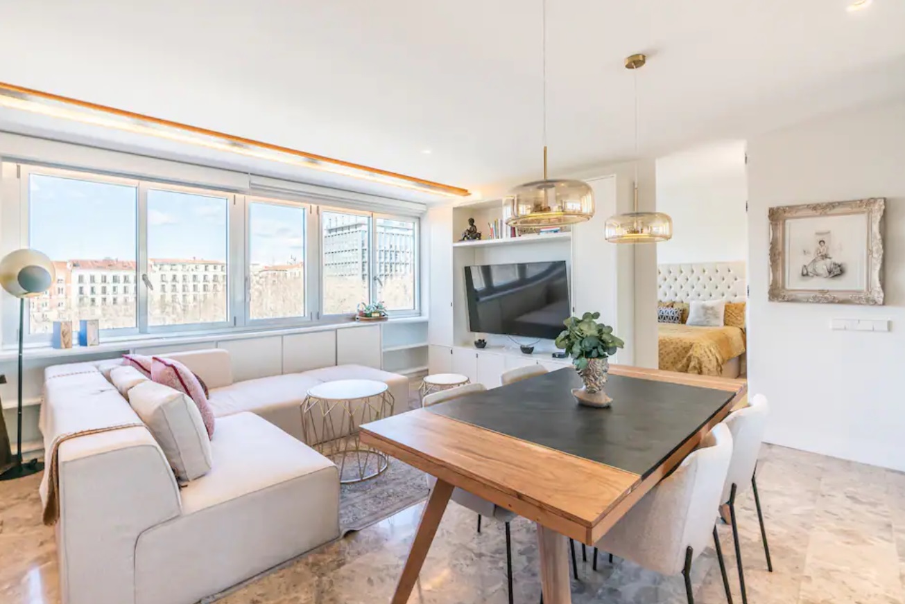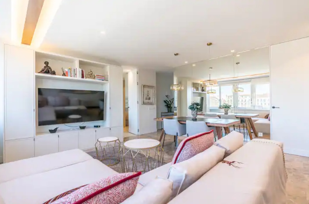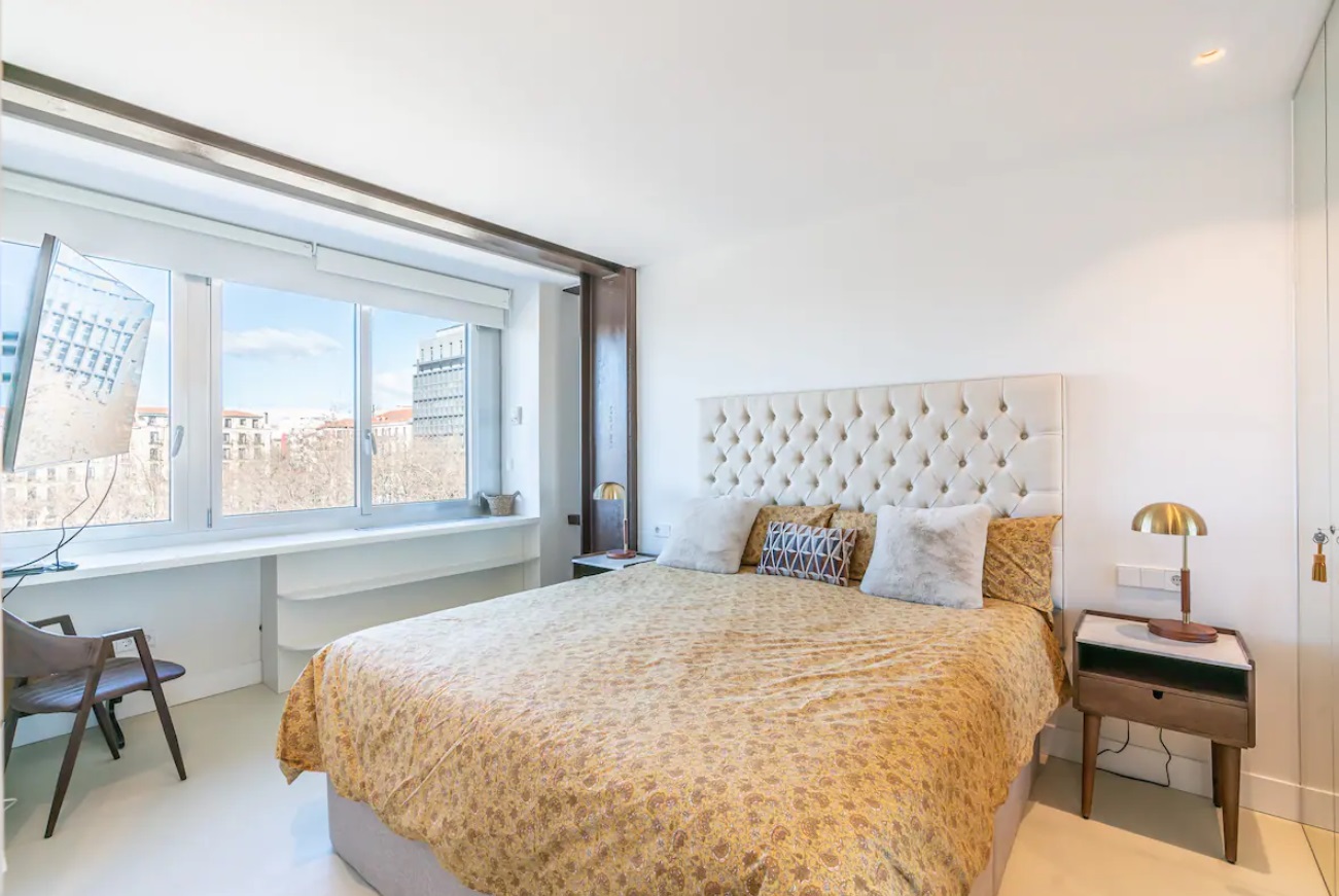 Con acceso directo a pie /en coche a Salamanca y Chueca. 2 dormitorios + 2 baños completos + cocina abierta + mesa de comedor. Grandes ventanales con vistas panorámicas al parque parisino. Perfecto para una escapada romántica, una estancia prolongada para dos parejas o unas vacaciones familiares. Lavadora y lavavajillas incluidos. El edificio cuenta con 6 ascensores y servicio de conserjería 24/7.
