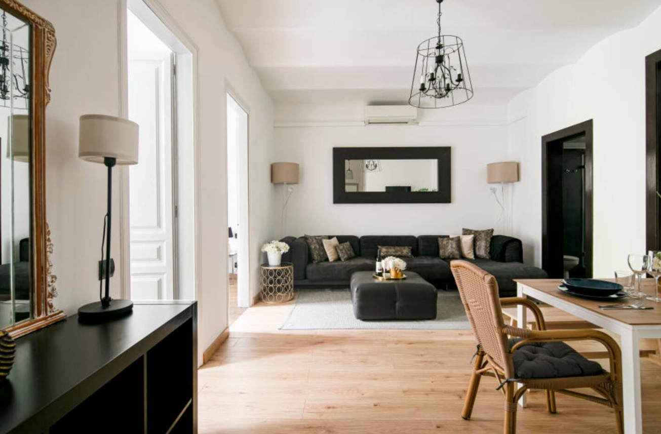 Este maravilloso apartamento de tres dormitorios está cerca de la Sagrada Familia, por lo que es perfecto para grupos pequeños, ya que puede acomodar hasta 5 personas. Te ofrece todas las comodidades necesarias para una estancia memorable en Barcelona, así como aire acondicionado en el salón para garantizar que tengas una estancia confortable aquí. También hay un balcón, donde se puede disfrutar de una puesta de sol o admirar las calles de abajo. En cuanto a cocinar tus comidas de inspiración española, tienes una cocina totalmente equipada, que se encuentra al lado del comedor. Este espacio es luminoso, debido a que goza de mucha luz natural. La cocina ofrece horno, tostadora y hervidor de agua, entre otros equipamentos. Hay tres habitaciones dobles en el apartamento, que tienen la misma decoración acogedora y elegante que el resto del apartamento. Son muy luminosas y tienen mucho espacio para almacenar tus pertenencias. Además de esto, el baño grande y reformado crea un espacio limpio y privado para que lo utilizen todos los invitados.