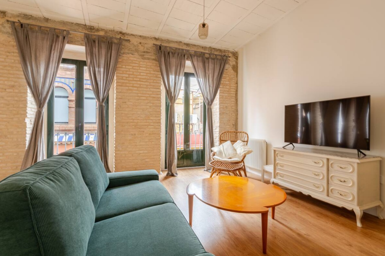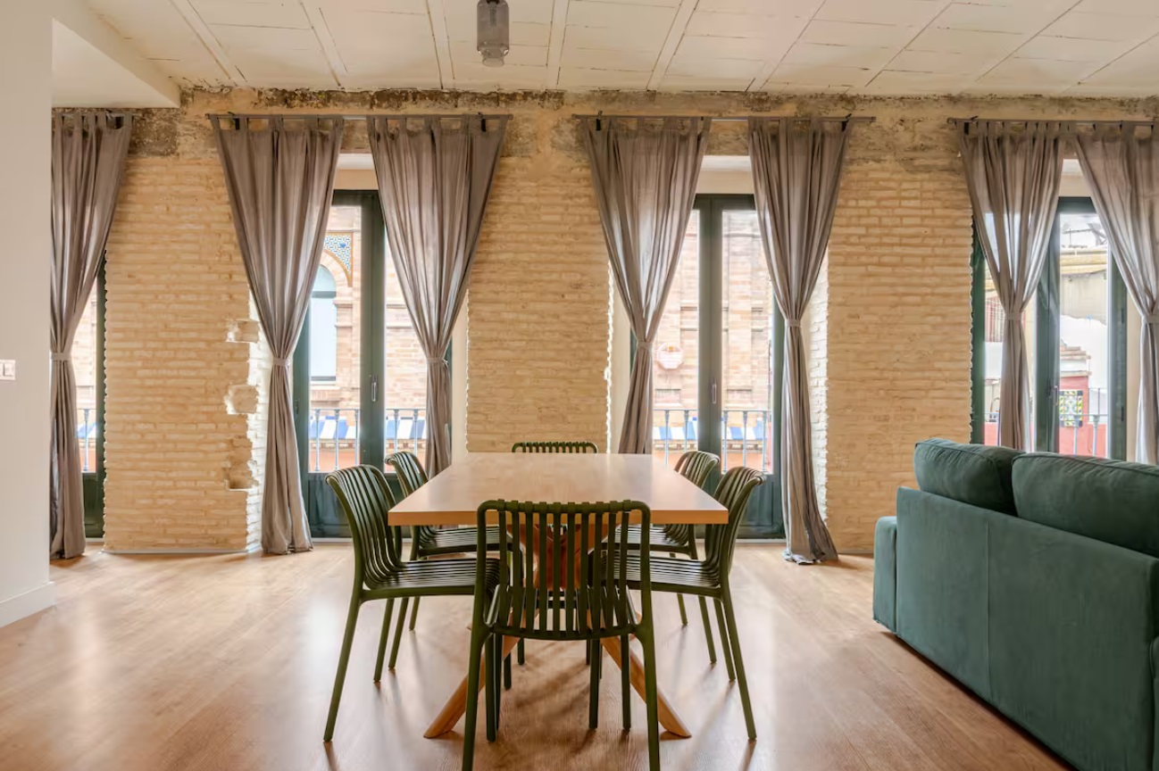 A sólo unos pasos de la catedral, en una tranquila callejuela peatonal resulta impactante encontrar un espacio tan amplio y silencioso, al que se accede a través su una escalera de mármol típicamente andaluza. Sus sofás, duchas, camas, clima y demás elementos están elegidos con criterios de calidad con objeto de garantizar la comodidad y el bienestar. El bonito recibidor da paso a un amplísimo espacio con el tejado abuhardillado que incluye una gran zona de estar, un comedor para 6-8 personas, una gran cocina con isla y una zona de trabajo. El dormitorio principal tiene dos camas individuales unidas de 180cm en total con baño en suite. El baño secundario se encuentra en el pasillo y al fondo una gran suite con dos camas de 105cm unidas y un sofá cama doble.