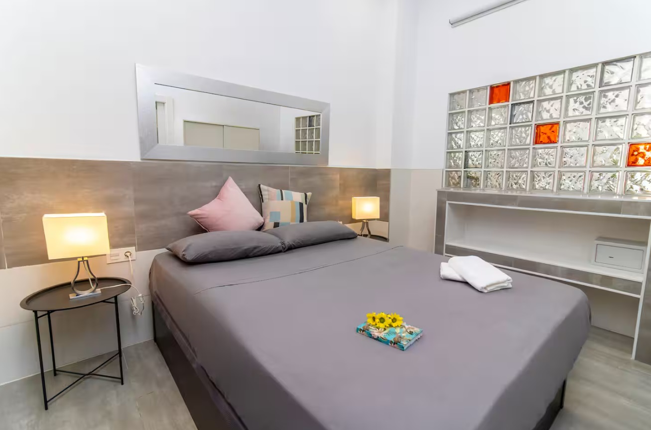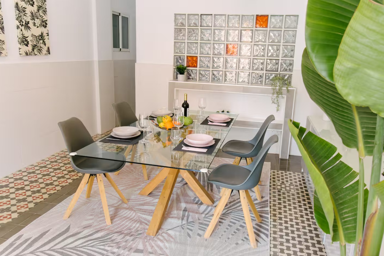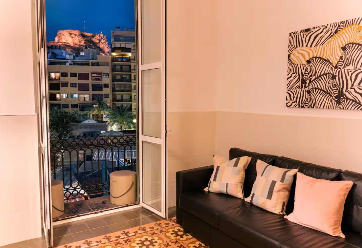 Nuestro ático de 88 metros cuadrados se encuentra en la zona céntrica de Alicante. Perfecto para unas vacaciones completas disfrutando de la ciudad con su sol, palmeras, oferta cultural, enogastronómica y playas. En una zona ideal, a pocos minutos de la Rambla y del casco histórico, y a tres minutos de la parada de metro que lleva a las playas del norte. La playa urbana del Postiguet está a 10 minutos a pie. La parada de autobús desde el aeropuerto de Alicante se encuentra a un minuto. En un edificio histórico con techos altos y suelos típicos de Alicante, el apartamento está situado en la 3.ª planta (ático), con ascensor.