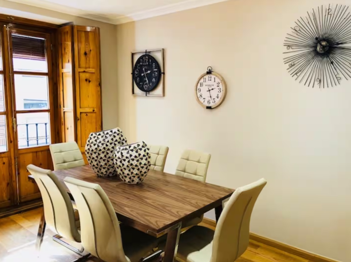 A 1 minuto de la plaza Mayor, en plena zona de tapas, restaurantes y comercio. Vista a plaza de Martí y Monsó (Coca). Transporte público próximo. El piso consta de dos habitaciones (con televisión y camas individuales), dos baños (toallas, secador de pelo, gel, champú), cocina (horno, microondas, lavadora-secadora, lavavajillas, frigorífico, plancha, cafetera, tostador, batidora, exprimidor eléctrico, olla y todo tipo de menaje) y salón comedor. WIFI.
