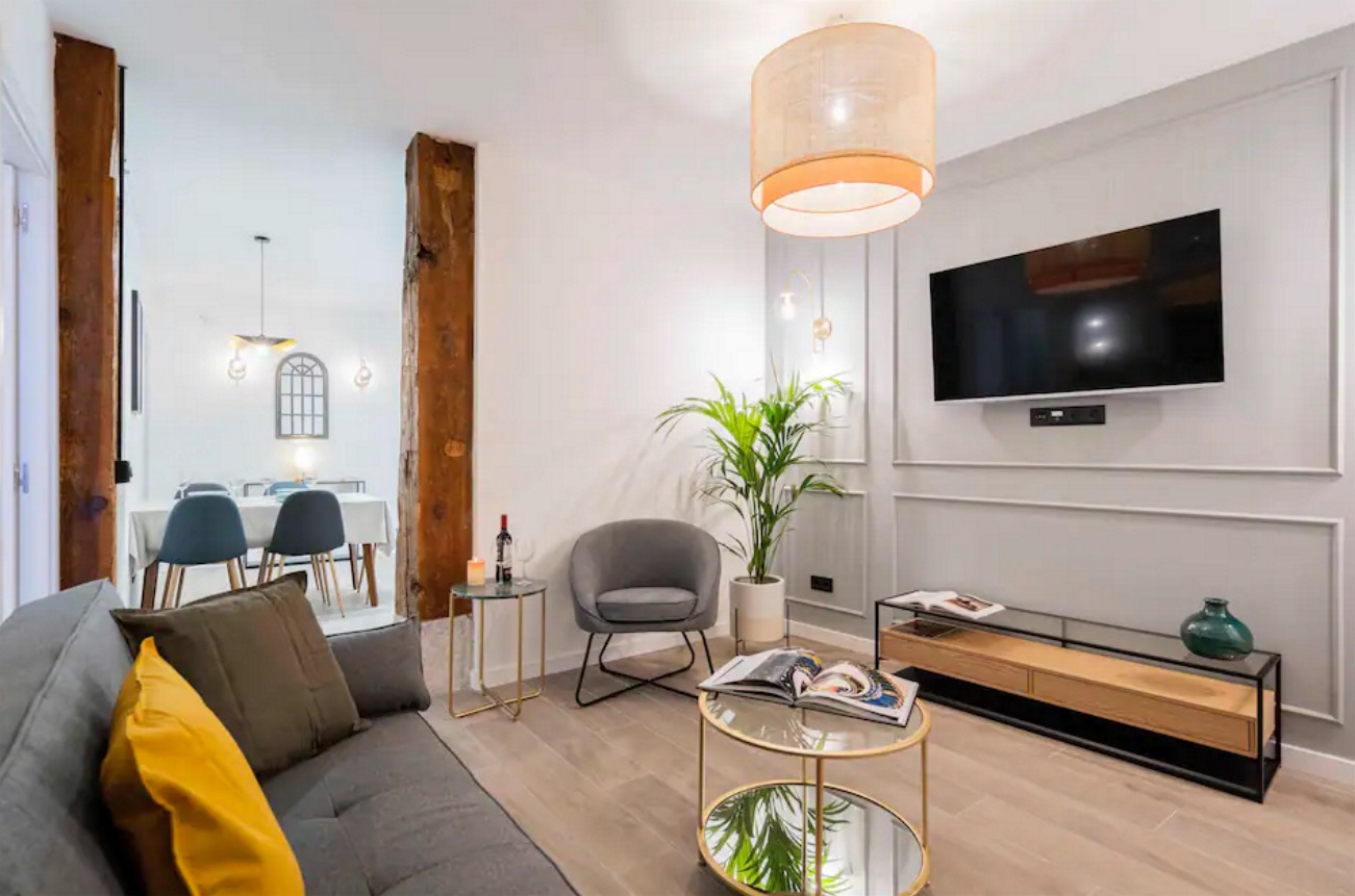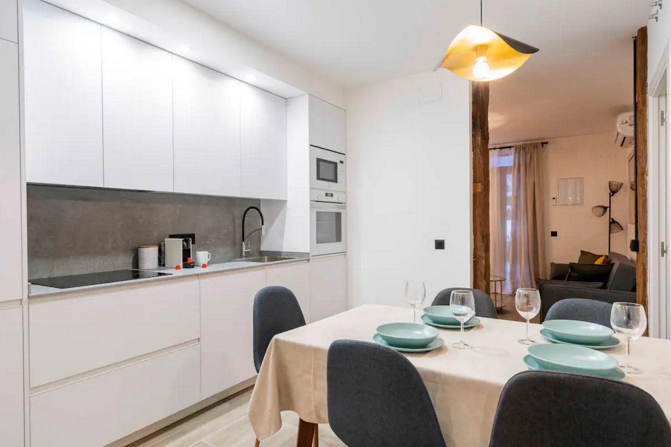 Este alojamiento tiene una ubicación estratégica e ideal para conocer la ciudad sin necesidad de transporte. Magnifico y exclusivo apartamento recién reformado. Cuenta con 2 dormitorios para dos personas, un cómodo salón con sofá cama, Smart TV, mesa de comedor, cuenta con una cocina abierta muy bien equipada, con todo lo necesario para cocinar durante su estancia, lavavajillas, horno, microondas, cafetera Nespresso, lavadora/secadora. Baño completo.
