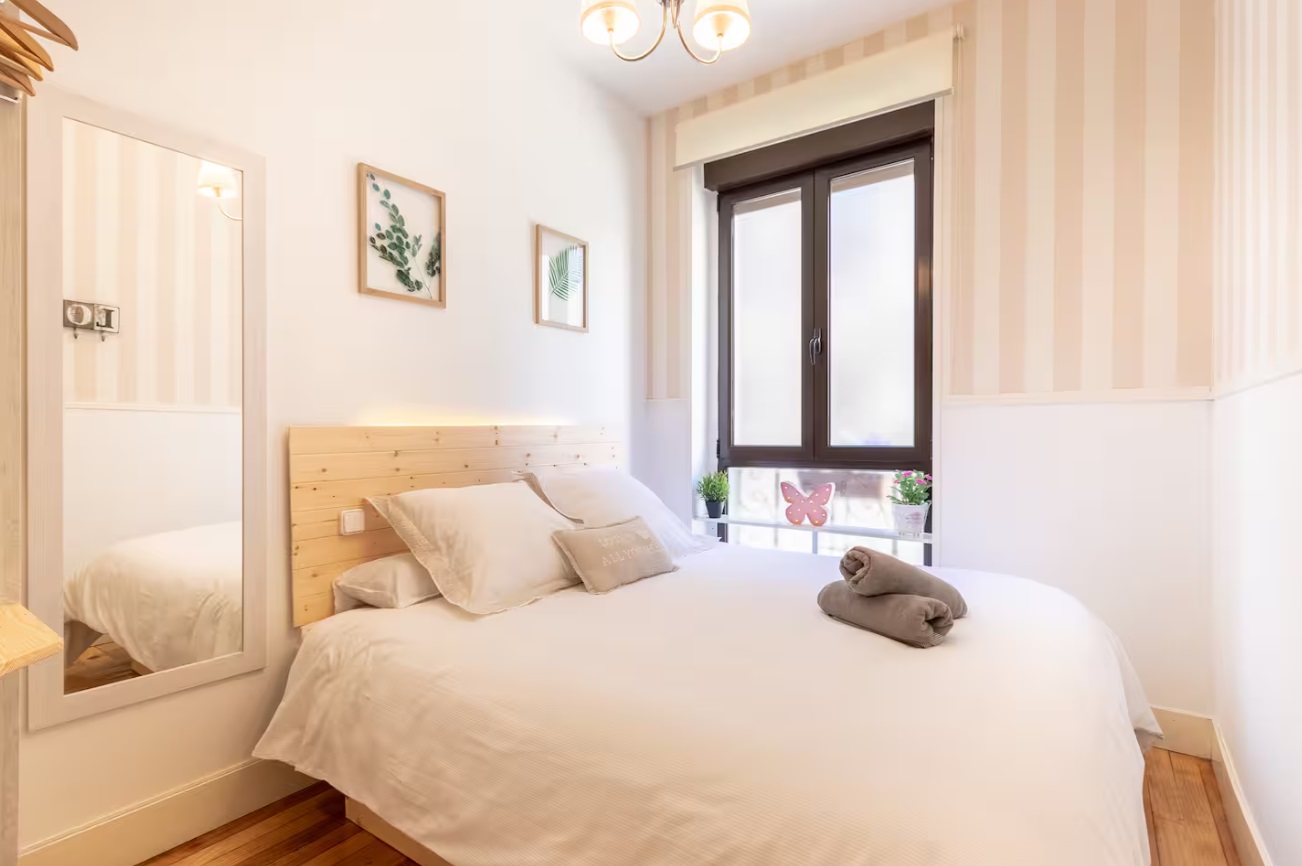Tiene 2 habs que permiten alojar a 2 personas en cada habitación y un cómodo sofá, también acabamos de incorporar una cuna para bebes hasta 3 años. Situación inmejorable a solo 5 mins del casco viejo y del famoso museo Guggenheim! Con plaza de garaje.
