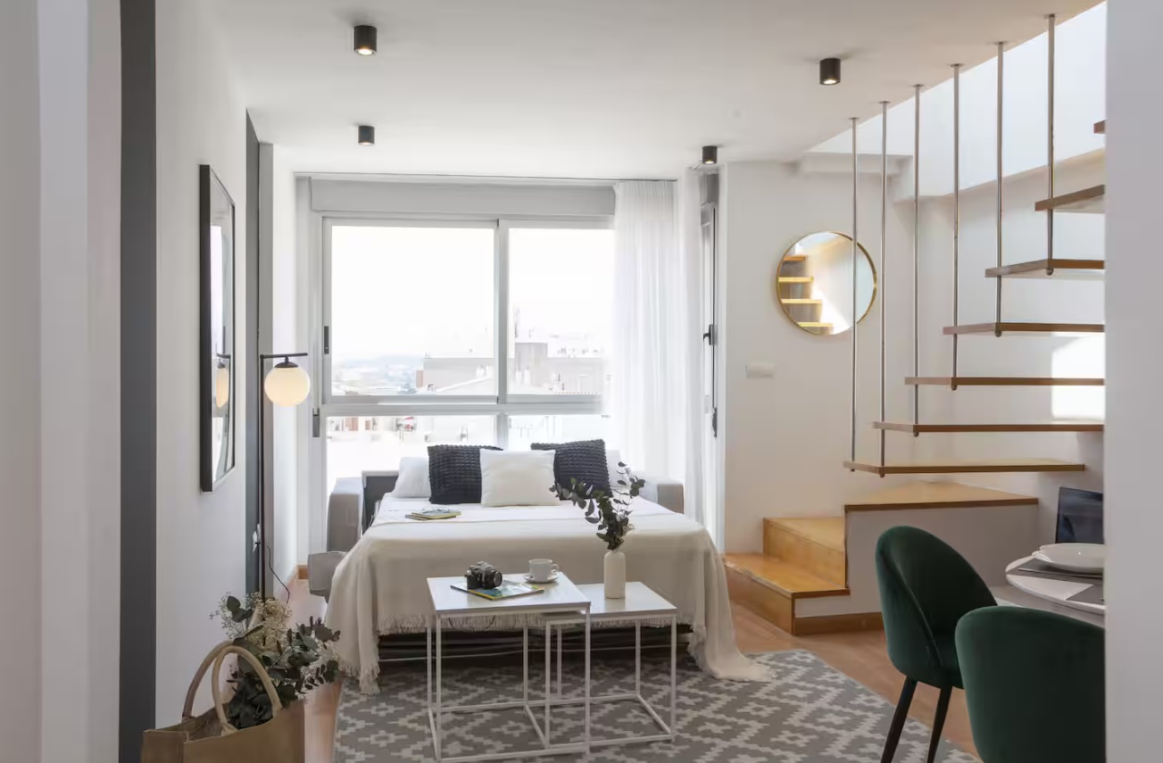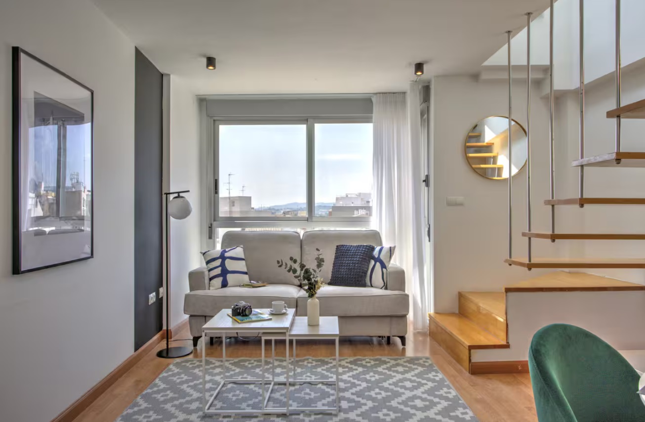 En la planta inferior, encontrarás un estudio acogedor con cama doble de 150 cm en su zona de dormitorio, separada parcialmente del salón por una pared que aporta una agradable sensación de intimidad y un baño en suite con ducha, y cuenta con un confortable sofá cama doble. La planta superior una terraza privada soleada perfecta para desconectar. Ático dúplex interior con encanto y muy luminoso. Hermosa y espaciosa terraza idónea para relajarse. Zona de descanso dos camas dobles matrimoniales y un hermoso comedor que incluye sofá cama doble para huéspedes adicionales. Dos baños completos con ducha. Cocina integrada con lavavajillas, lavadora, microondas, nevera y utensilios esenciales. Equipado con aire acondicionado, ropa de cama, toallas, secador de pelo y plancha.