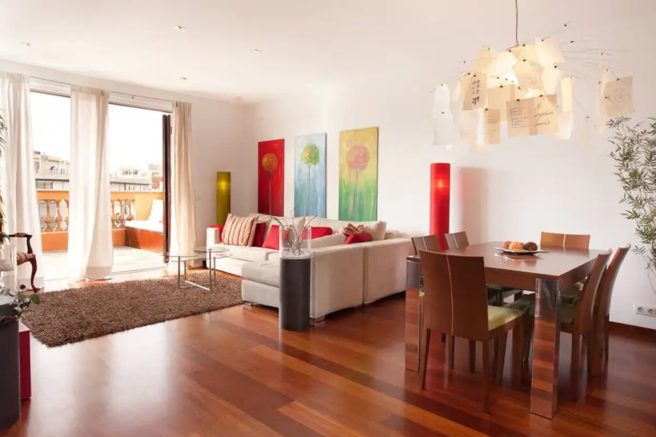 Hospédese en una de las zonas más emblemáticas de la ciudad, mientras disfruta de unos momentos relajantes en este hermoso espacio. Ático luminoso y cómodo ubicado en Passeig Sant Joan. Este apartamento ofrece serenidad y un ambiente tranquilo en el corazón de la ciudad. Totalmente equipado con electrodomésticos modernos, es un lugar ideal para familias, parejas o viajeros de negocios debido a su excelente ubicación y diseño / estilo.