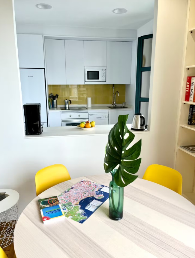 Ubicado en la última planta de un edifico histórico con ascensor y situado en pleno centro de Gijón. La vivienda está totalmente equipada y goza de grandes ventanales con vistas privilegiadas para que tengas siempre a la vista el mar, ya sea mientras disfrutas del desayuno o mientras te relajas leyendo en el sofá. ldeal para viajeros, parejas, familias y viajes de negocios. La vivienda, de unos 120 metros cuadrados, está distribuida en dos plantas, la inferior con una cocina completamente equipada comunicada con un amplio salón-comedor y una planta superior, con dos luminosos dormitorios. Uno de ellos con cama de 150 y otro con dos camas de 90. Al ser habitaciones abuhardilladas, además de ser muy luminosas, su altura y ubicación junto al mar aísla de cualquier tipo de ruido urbano. El único sonido que oirás desde tu cama será el de las olas del mar rompiendo en la playa. Cada dormitorio tiene un baño completo propio, uno con bañera y otro con una gran ducha con efecto lluvia. La vivienda dispone además del sofá cama de 120 para un quinto invitado.