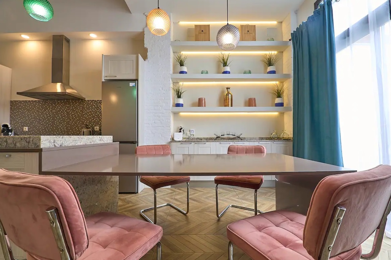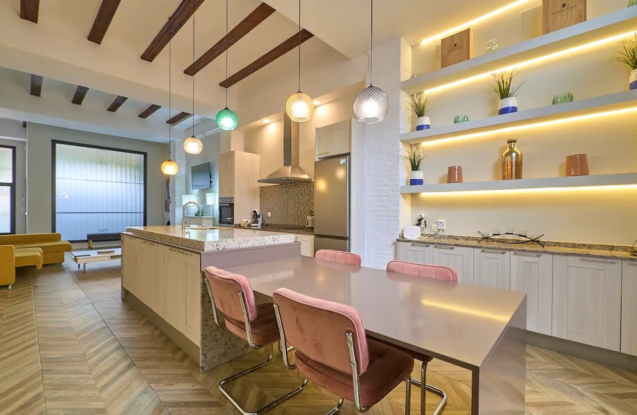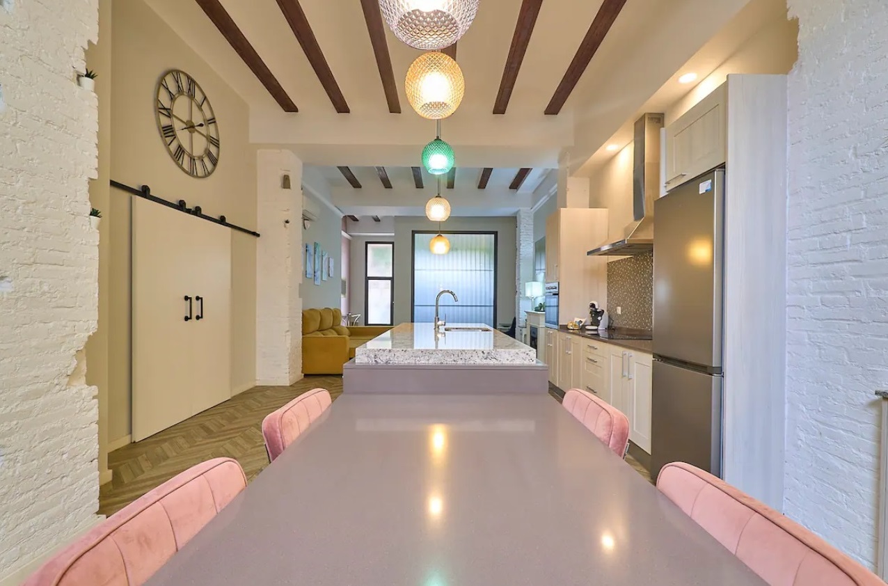 Espectacular casa de diseño, espaciosa en todos sus ambientes, acogedora, con piscina privada y todas las comodidades. Tiene todo lo necesario para que disfrutes de unos días inolvidables en Valencia. Es un lugar tranquilo, único y céntrico. El diseño interior de la casa es elegante y espacioso, con un ambiente acogedor que te hará sentir como en casa. La sala de estar es el lugar perfecto para relajarte y descansar después de un día de exploración, con cómodos sofás y una gran televisión de pantalla plana para tu entretenimiento. La cocina está totalmente equipada con todos los electrodomésticos y utensilios que necesitas para preparar tus comidas favoritas. El comedor es ideal para disfrutar de comidas en familia o entre amigos, y si prefieres cenar al aire libre, puedes hacerlo en la terraza junto a la piscina. El apartamento cuenta con habitaciones espaciosas y luminosas, cada una de ellas decorada con atención al detalle y con camas cómodas que garantizan una noche de descanso reparador. Los baños son modernos y elegantes, con todas las comodidades que necesitas.