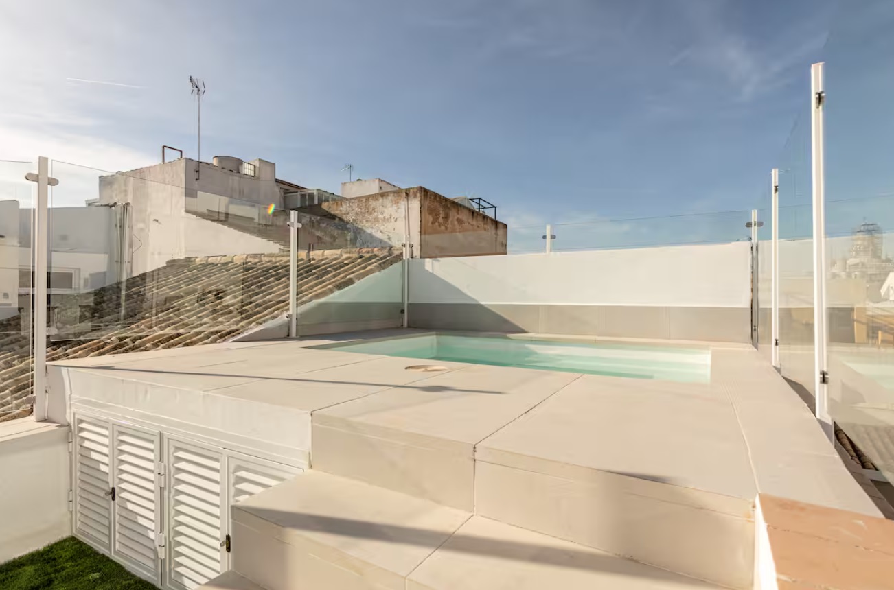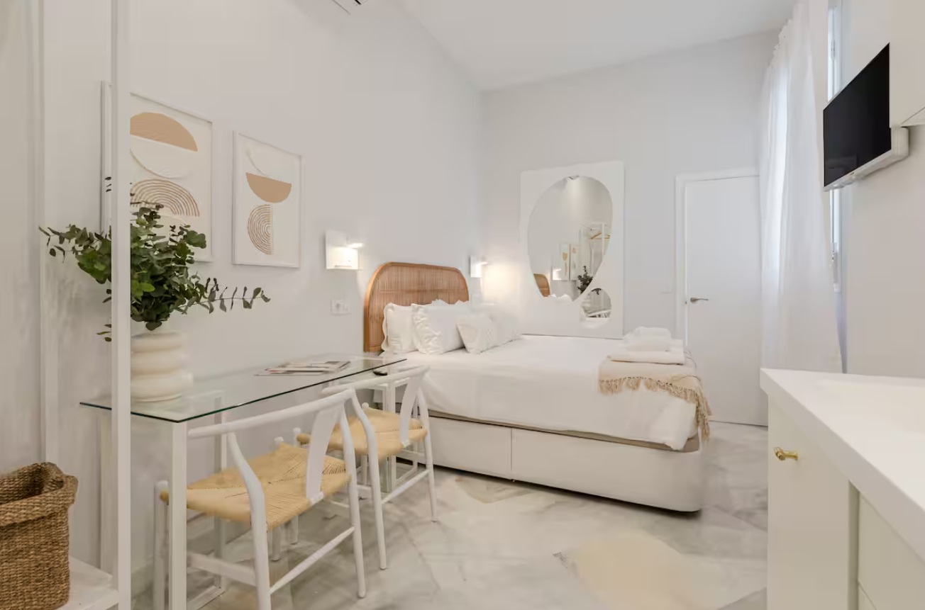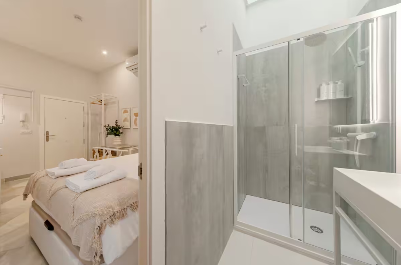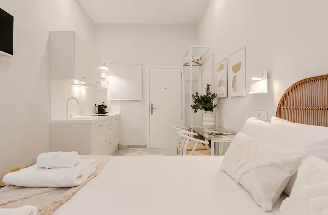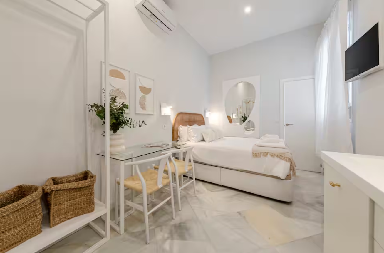 El edificio perteneciente a una familia de la aristocracia Sevillana, completamente rehabilitado en 2023, respetando su fisionomía estructura y materiales originales, pero adaptándolo al uso hotelero con todas las comodidades que requiere un establecimiento de alto standing del siglo XXI. El edificio además cuenta con piscina y solárium comunitario donde podrá disfrutar de vistas inigualables de la Iglesia del Salvador.Precioso apartamento a estrenar con 1 dormitorio , baño, cocina y pequeño salón de estar con sofá cama y Smart TV.