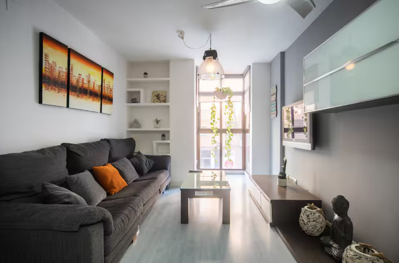 Excelentes Comunicaciones para llegar en Avion y Tren o moverte por la Ciudad andando, en autobus, metro ó Tranvia para visitar el Centro, la Playa y la Ciudad de las Ciencias. Es tranquilo y en una buena zona de la plaza Xuquer llena de restaurantes donde probar incluso una autentica Paella a Leña. Tiene television en el cuarto y un magnifico colchon (150×190 cm) de latex para un descanso asegurado