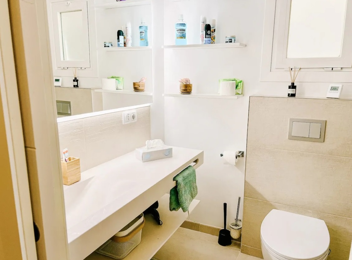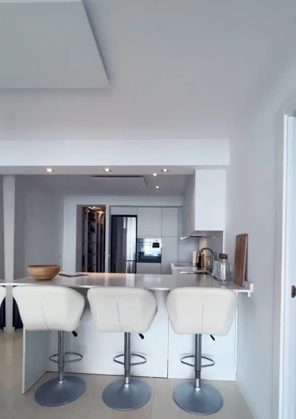 Este apartamento reformado con una sala de estar de unos 90 m2 se encuentra en la 2ª planta (con ascensor) y está dividido en 3 dormitorios (uno de los cuales actualmente está amueblado como vestidor y oficina), 2 baños con ducha y aseo (uno de ellos en suite), cocina americana con conexión al salón, 1 trastero en la amplia terraza de 25 m2 y 1 pequeña terraza a la parte trasera. Bienvenido a este apartamento renovado de 4 habitaciones con una generosa sala de estar de unos 90 metros cuadrados. El apartamento se encuentra en el segundo piso y es fácilmente accesible por ascensor. Ofrece 4 habitaciones, dos baños con ducha e inodoro, una cocina americana de alta calidad con acceso directo a la sala de estar, así como un práctico trastero.Para temperaturas agradables, calentadores de infrarrojos en los techos, que están instalados en todas las habitaciones menos en las habitaciones. Estos ofrecen una temperatura ambiente acogedora incluso en días fríos. Lo más destacado son las camas de agua calentables, que garantizan una comodidad especialmente alta para dormir. La cocina americana ofrece no solo un aspecto moderno, sino también una conexión práctica con la sala. La pequeña terraza, desde la que se puede disfrutar de una vista al mar Mediterráneo, es accesible desde la cocina y también alberga la conexión para la lavadora. La gran terraza, accesible desde la sala, ofrece una zona de estar ideal para experimentar la impresionante vista panorámica del mar Mediterráneo. Aquí experimentarás vivir en una nueva dimensión: elegante, cómoda y con una vista incomparable.
