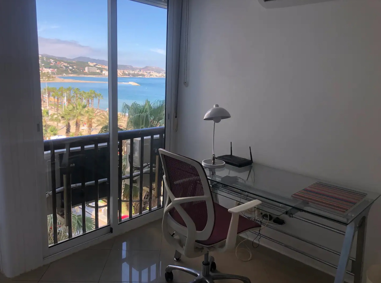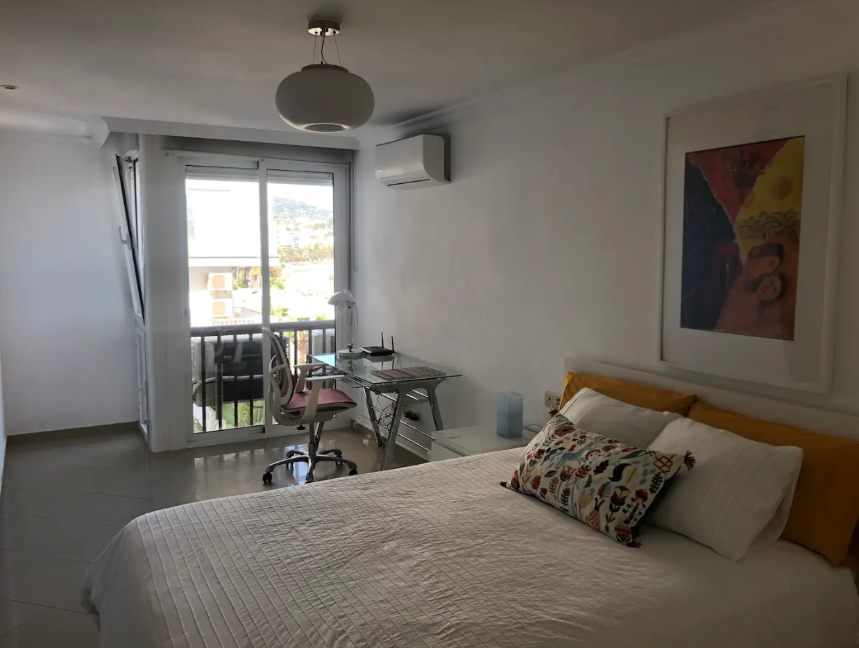 El dormitorio principal dispone además de un espacio de trabajo cómodo, ideal para quienes necesiten combinar descanso y productividad, desde donde se puede contemplar el amanecer sobre el mar.