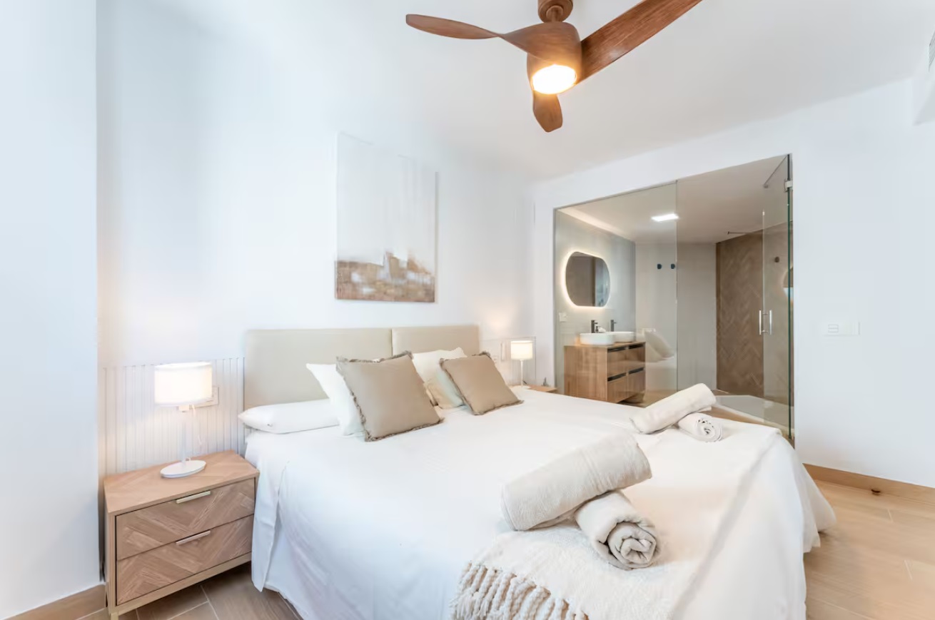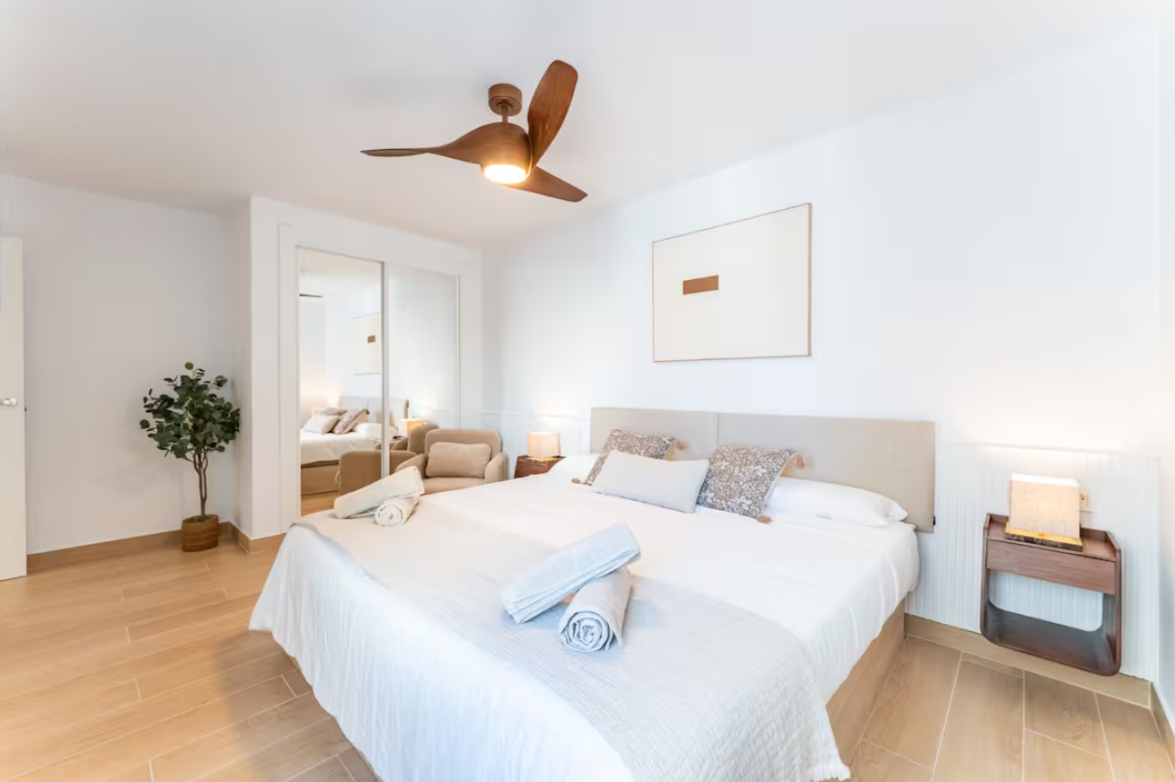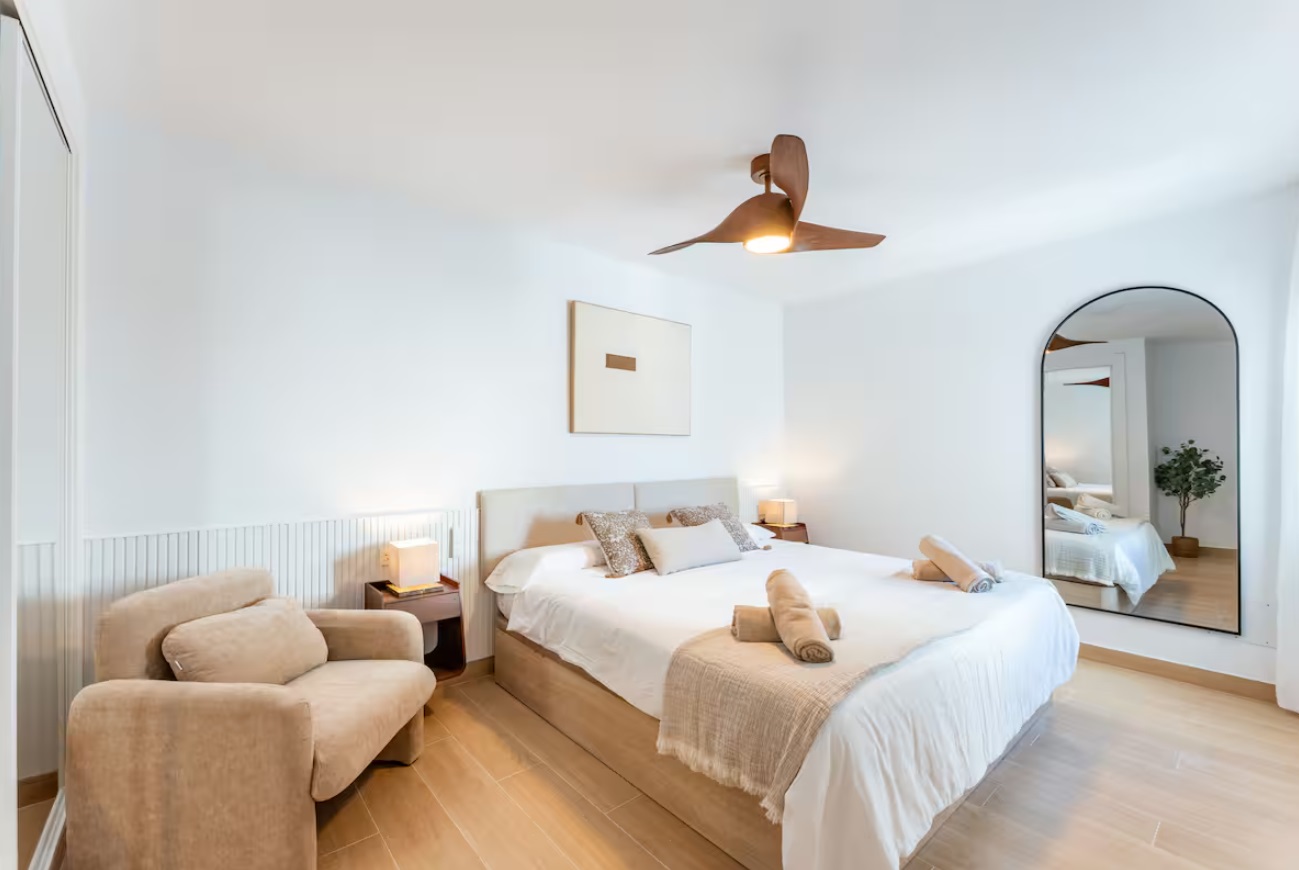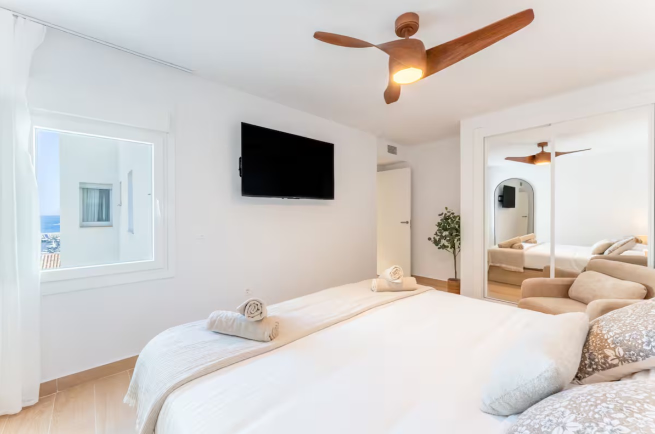 Este apartamento cuenta con 2 dormitorios, ambos con vistas al mar y al puerto. El primer dormitorio con cama de 200cm y el segundo con una cama de 180cm. Cuenta con 2 baños completos, uno de ellos en suite. Tiene una cocina americana con isla en cascada, terraza con vistas a la montaña, Aire Acondicionado, Wifi, parking privado y todo tipo de servicios que harán de su estancia una maravilla. Disfrute de una estancia inolvidable en este precioso apartamento completamente reformado, decorado con gusto y ubicado en una de las zonas más exclusivas de Marbella: Puerto Banús. A solo unos pasos de las tiendas de lujo, los mejores restaurantes, beach clubs y la marina, este alojamiento es perfecto para quienes buscan comodidad, estilo y una ubicación inmejorable. La propiedad dispone de dos dormitorios amplios y luminosos, ambos con impresionantes vistas al mar y al puerto deportivo. El dormitorio principal cuenta con una cama king size de 200 cm y baño en suite, mientras que el segundo dormitorio tiene una cómoda cama de 180 cm, ideal para el descanso. Dispone de dos baños completos, ambos modernos y funcionales, con acabados de alta calidad, perfectos para una estancia cómoda tanto en pareja como en familia o con amigos.La cocina americana está totalmente equipada y cuenta con una elegante isla en cascada, ideal para preparar comidas o compartir momentos especiales. El salón conecta con una acogedora terraza con vistas a la montaña, perfecta para desayunar al sol o disfrutar de una copa al atardecer.
