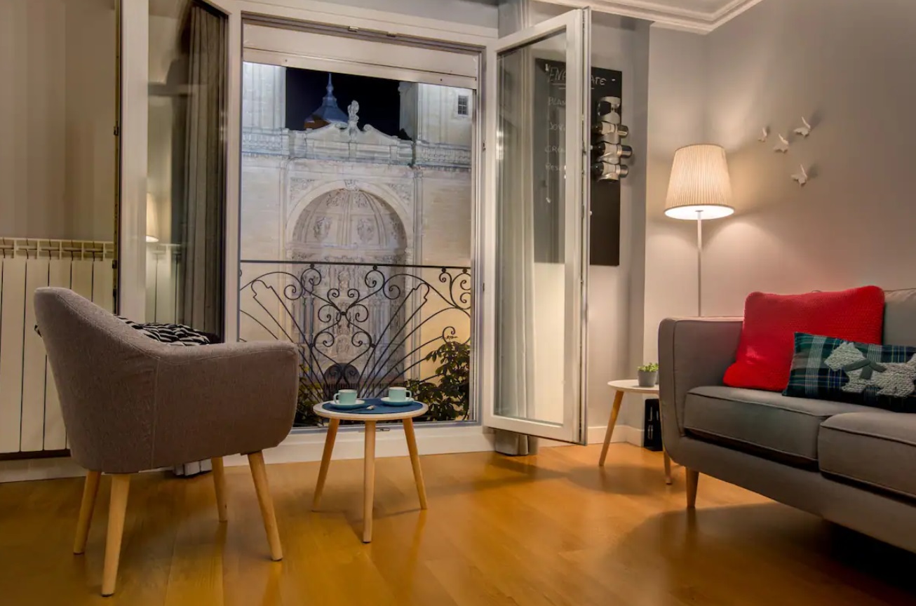 Se encuentra a sólo 3 minutos a pie de la Calle Laurel. Totalmente equipado con todas las comodidades, es ideal para familias, parejas, viajeros de ocio/negocios y para los amantes del vino! Situado en La Plaza del Mercado nuestro apartamento, te ofrece la posibilidad de tomarte una copa de vino en el balcón disfrutando de unas vistas espectaculares de la Concatedral de Santa María de la Redonda. Y sumergirte en el gran ambiente que hay en la ciudad.