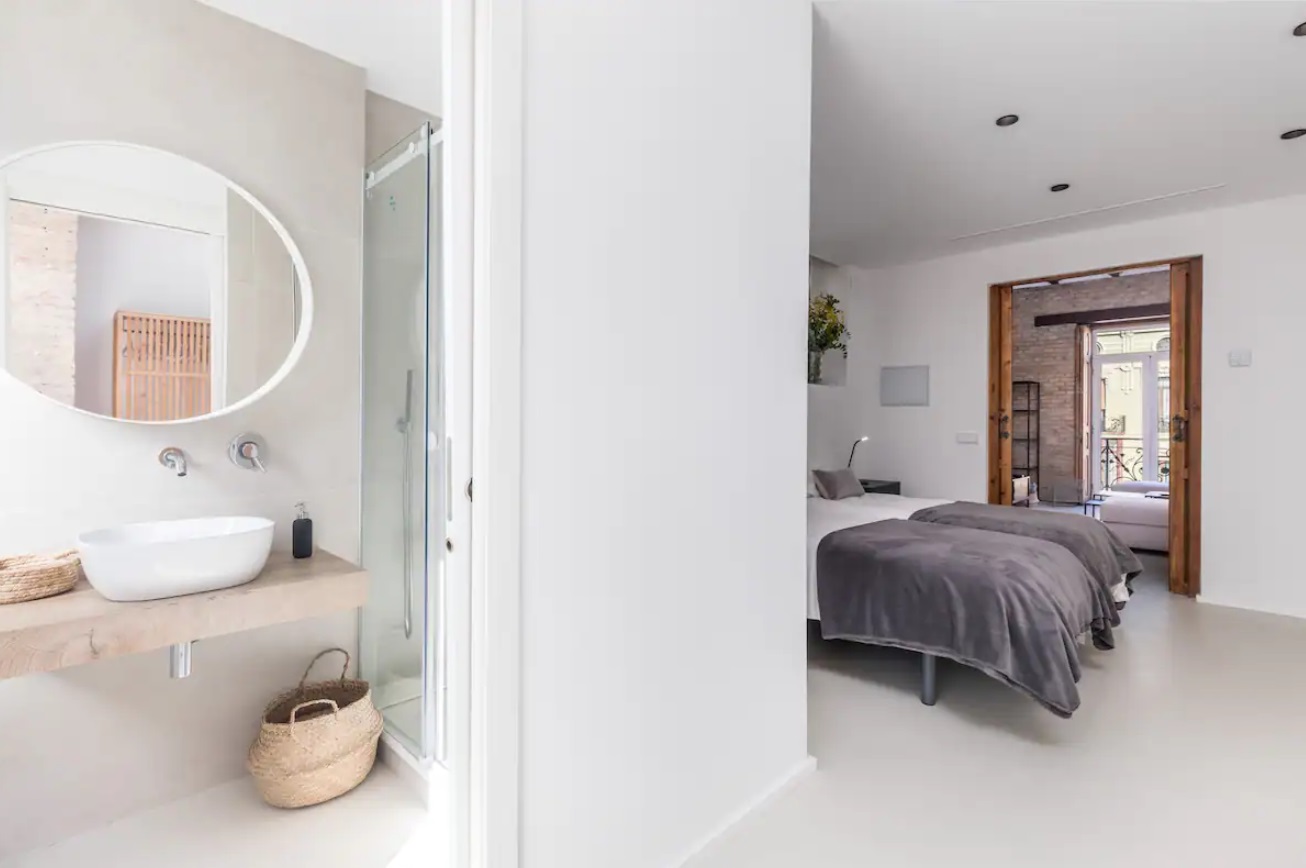 Este nuevo apartamento está destinado a los amantes del diseño. Cuidamos durante la renovación de cada detalle y creamos un espacio donde nadie querrá irse nunca. El apartamento está cuidadosamente decorado y tiene luz proveniente de todos los rincones. Cocina abierta totalmente integrada con la sala de estar y tres balcones conforman el espacio principal. 2 dormitorios cada uno con su propio baño la segunda mitad de la casa. Durante la noche las luces te cautivarán.Conservamos la belleza de las calas de techo abierto con vigas de madera y paredes de ladrillo, esto se integra con una moderna cocina totalmente equipada con electrodomésticos de alta gama, nevera Smeg, horno y microondas Bosch… La campana extractora está incorporada en la isla de la cocina. La casa está totalmente iluminada con luces Flos incorporadas en la arquitectura del espacio. Gracias a los tres balcones, la luz llena cada espacio. 2 dormitorios, uno con una cama tamaño king y otro con 2 camas individuales y baños modernos y espaciosos. El apartamento es tranquilo, ofrecemos wifi de alta velocidad, lavandería y secadora, lavavajillas, máquina Nespresso, aire acondicionado, toallas de playa y paraguas.