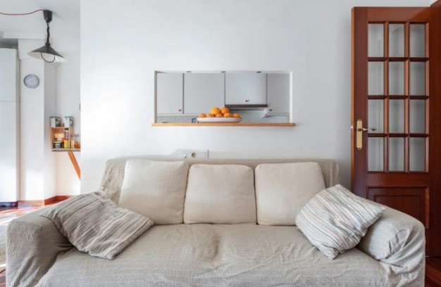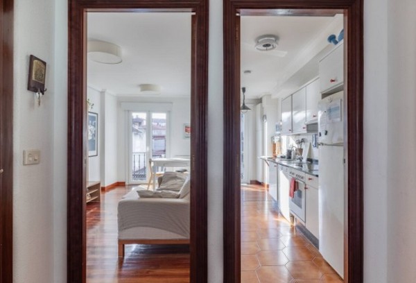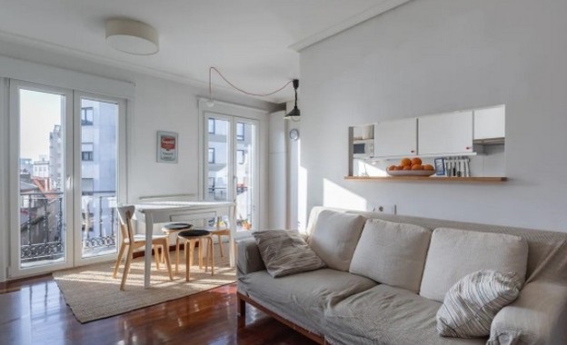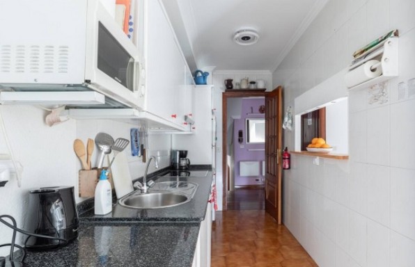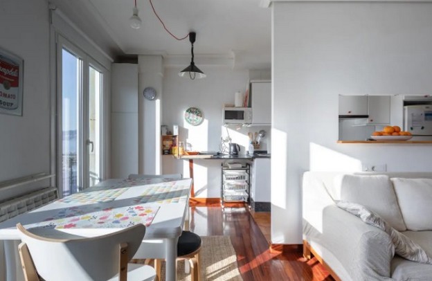 Precioso piso de 85 m dividido en 2 alturas. Arriba está la entrada, salón con 2 balcones y cocina. Bajando 10 escalones encontramos 1 amplio dormitorio con baño completo en suite y TV, otro dormitorio y 1 aseo. Esto permite tener 2 ambientes y hacer vida arriba mientras alguien esté descansando. Perfecto para familias.