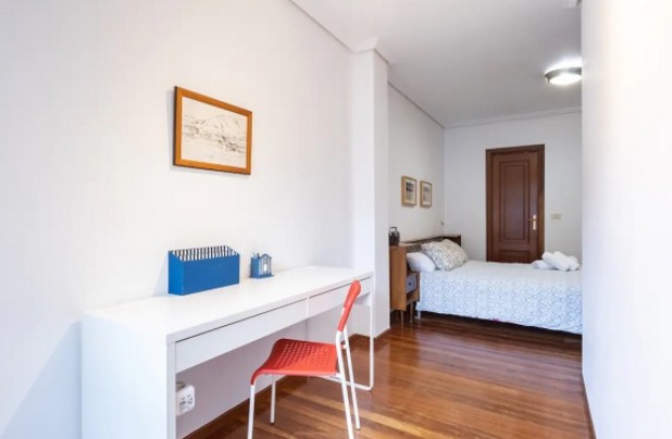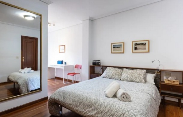 La habitación principal es muy amplia con mesa de trabajo para el ordenador, tiene una cama de 1,50 con colchón de látex y televisión, con el baño en suite. La otra tiene una cama nido con colchones de 90, uno viscoelastico y otro de muelles.