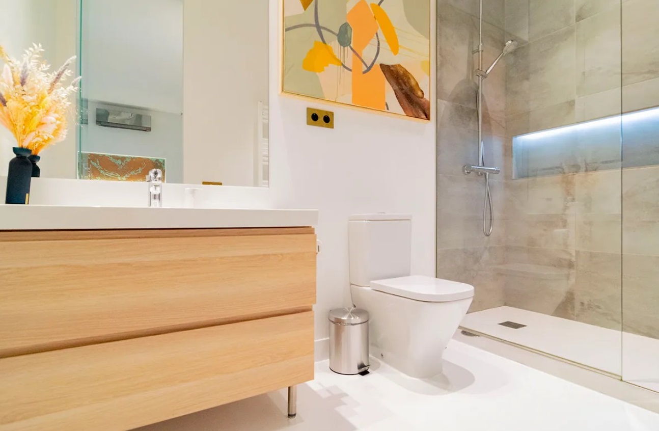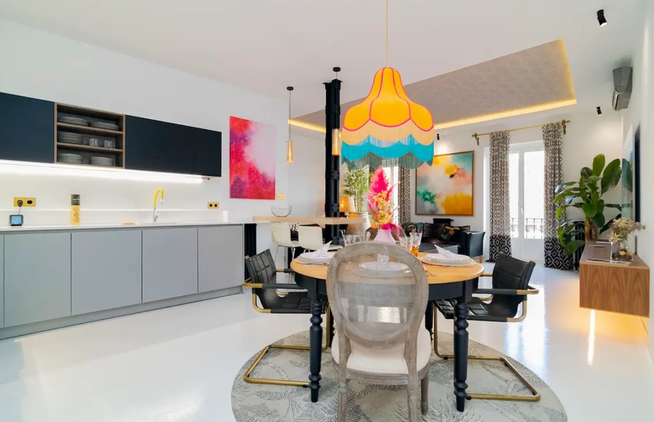 Exquisito y finamente decorado, con abundante iluminación natural y cocina dada al salón para aportar un comedor ideal, que hará a tus comidas únicas e irrepetibles. Amplios espacios, techo doble altura, sala vistosa y cómoda de la cual no querrás salir. Espacio de diseño y confort, en donde puedes enamorarte de las vistas al cielo de Madrid desde nuestros balcones mientras compartes un buen vino, y al final de la noche poder descansar con un baño de sales y luego, en una cama maravillosa doble.