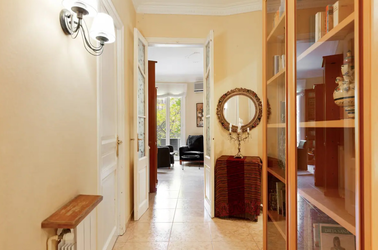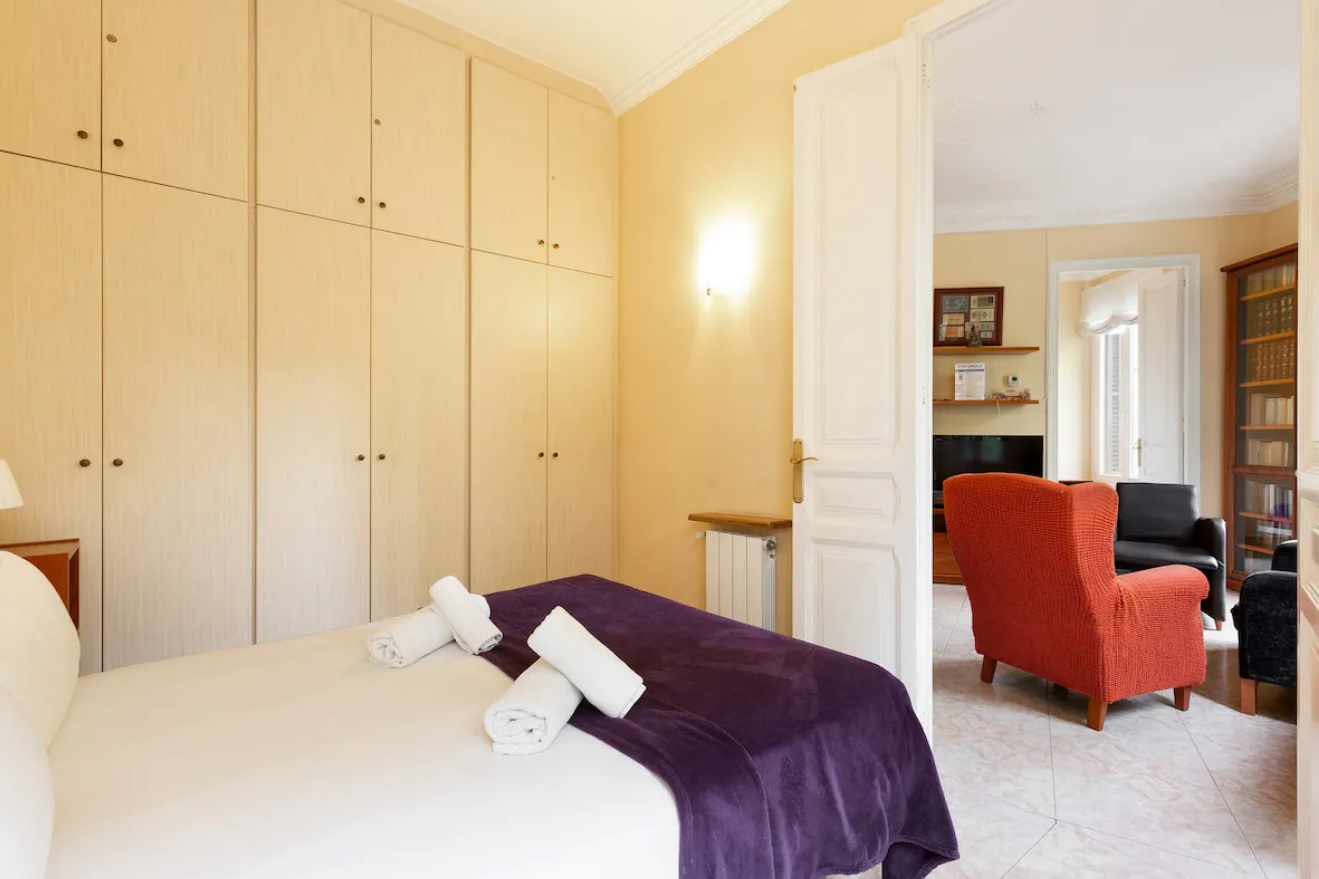 Este impresionante apartamento en Barcelona cuenta con tres dormitorios para un máximo de 4 huéspedes. Ambos dormitorios tienen una cama doble de alta gama, ropa de cama de marca, iluminación suave y obras de arte contemporáneo. Las habitaciones son cálidas y acogedoras, y un gran lugar para relajarse después de explorar la hermosa ciudad.